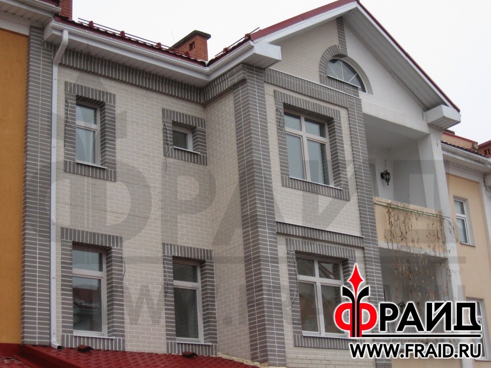Облицовка дома термопанелями Фрайд с клинкерной плиткой Feldhaus R100NF9.