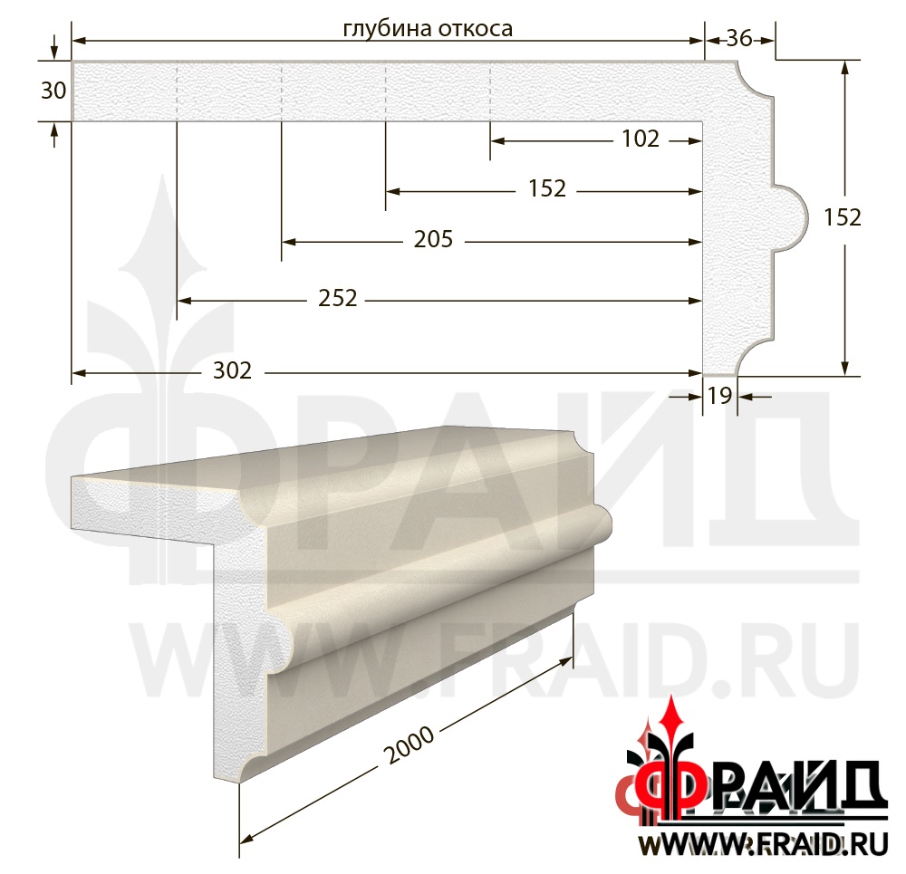 Фрайд Декор - Наличник с откосом - НО-1-152-36-19