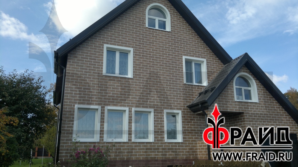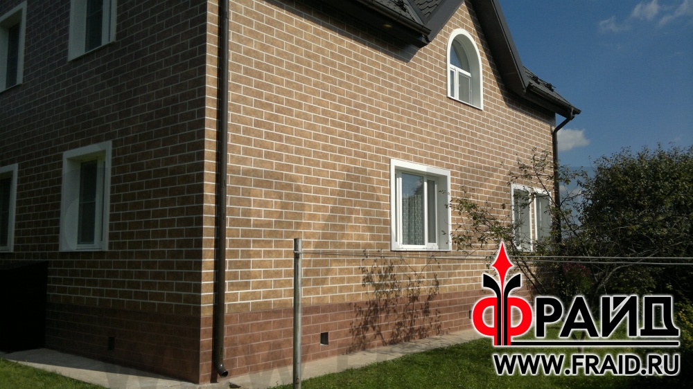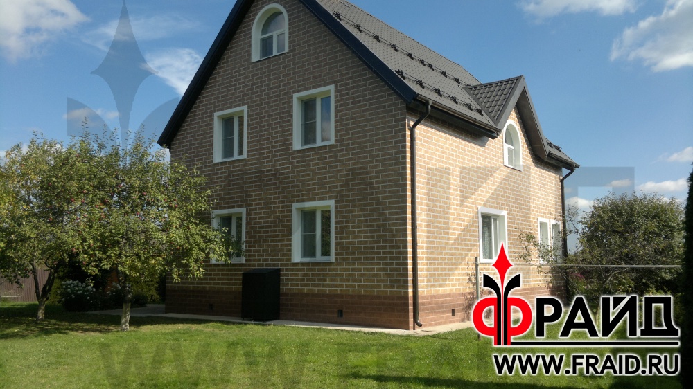 Облицовка дома термопанелями Фрайд Эконом с глазурованной керамикой Сокол FN07. Дом с отделкой