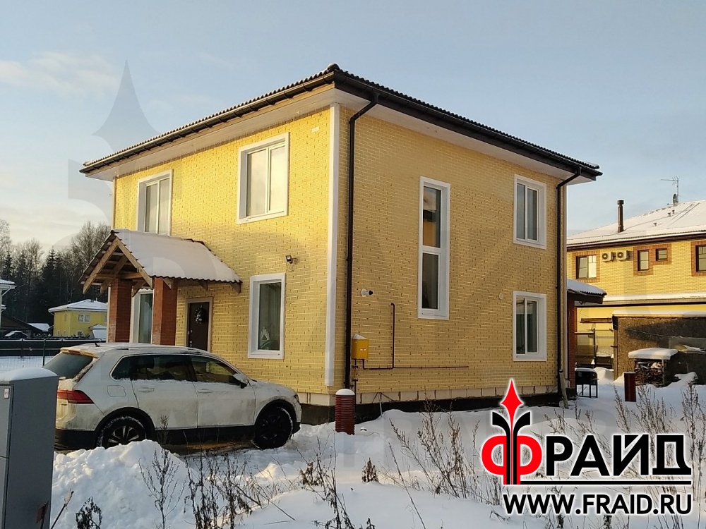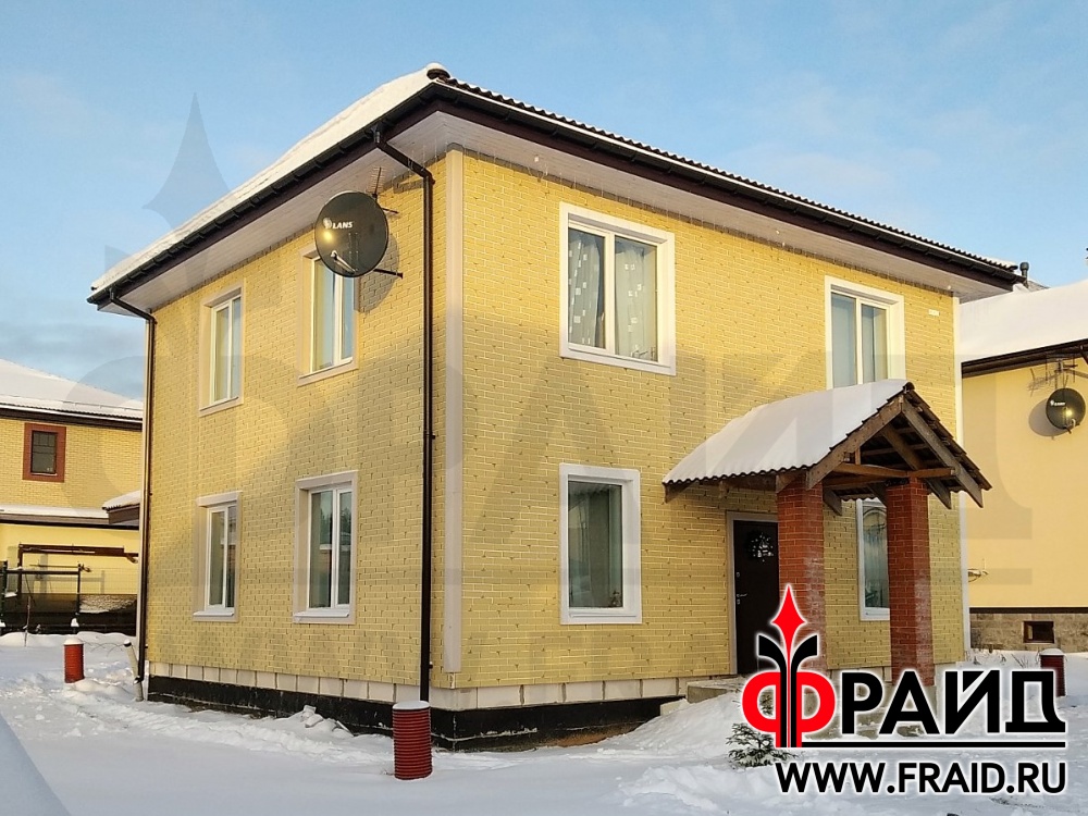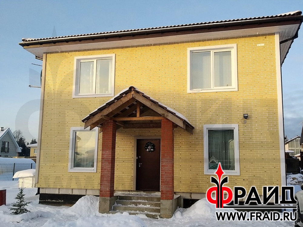 Термопанели Фрайд Эконом Стандарт с клинкерной плиткой Cerrad Gladka Piaskowa на дом из пеноблока. Элементы фасадного декора Фрайд Декор.