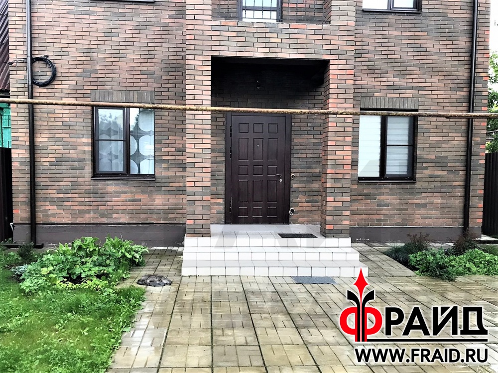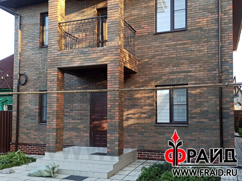 Низкий цоколь кирпичного дома. Фрайд Эконом Стандарт с клинкерной плиткой Cerrad Rustico Country Wisnia