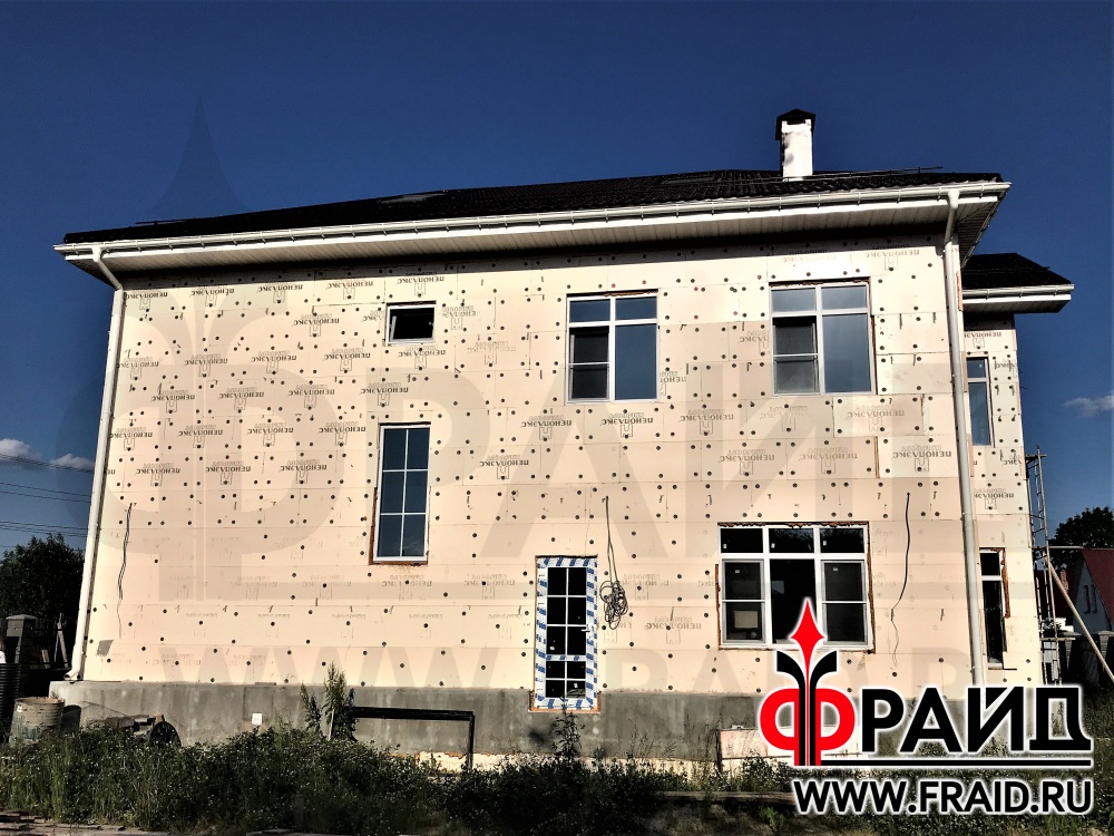 Отделка и утепление дома из "теплой" керамики. Термопанели Фрайд Эконом Стандарт с клинкерной плиткой Cerrad Loft Brick Cardamon. Фрайд Премиум с керамогранитом Estima JZ01. Фасадные элементы Фрайд Декор.