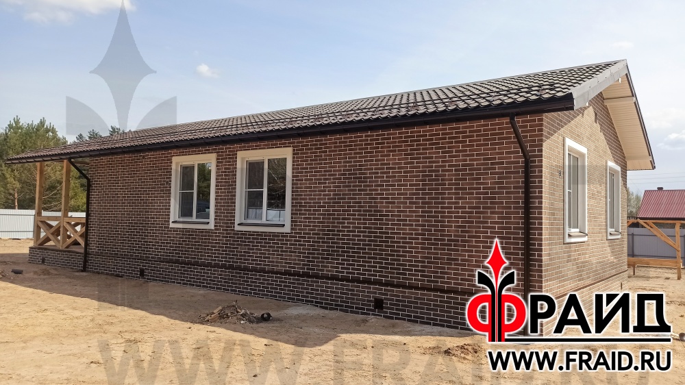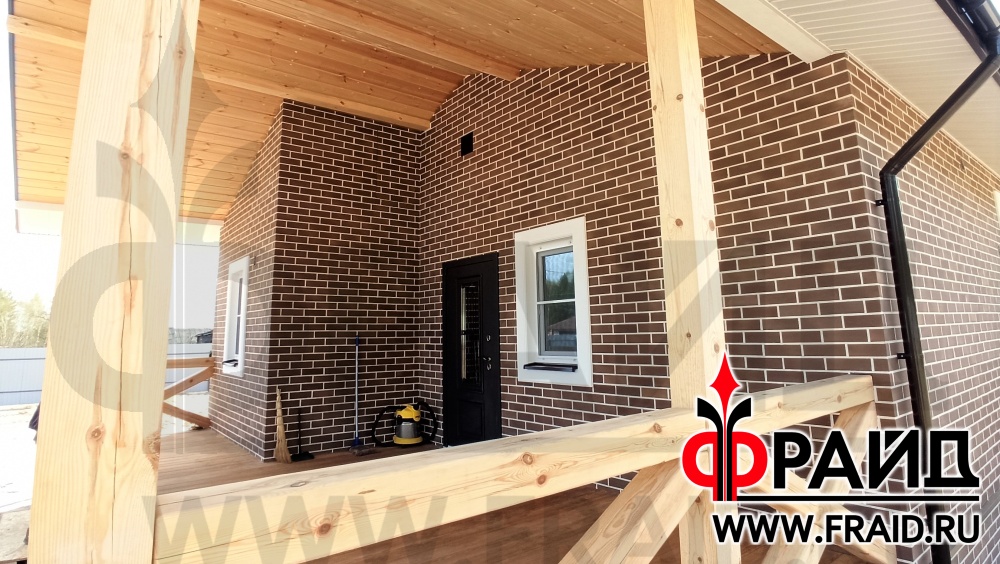 Каркасный дом. Применяем: термопанели Фрайд Стандарт с клинкером Terramatic 2109. На окнах установлены совмещенные наличники с откосом Фрайд Декор.
