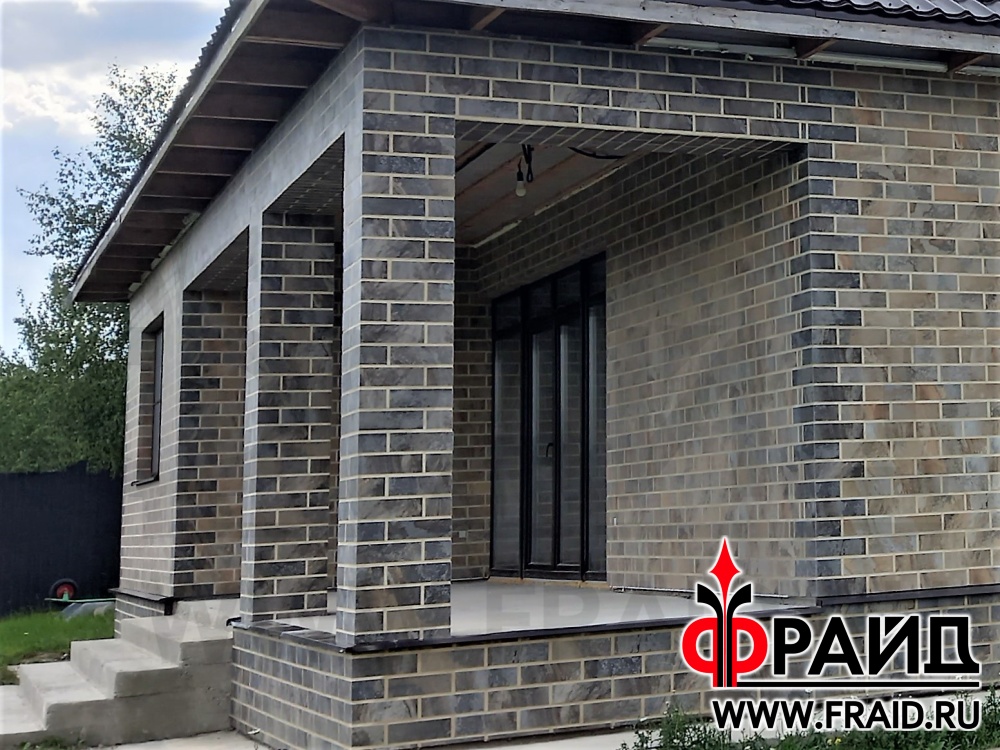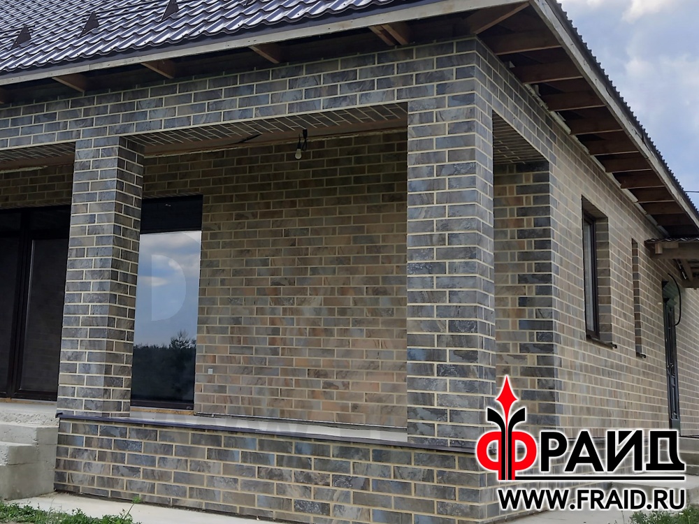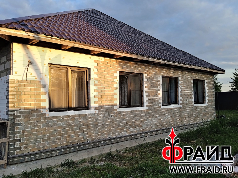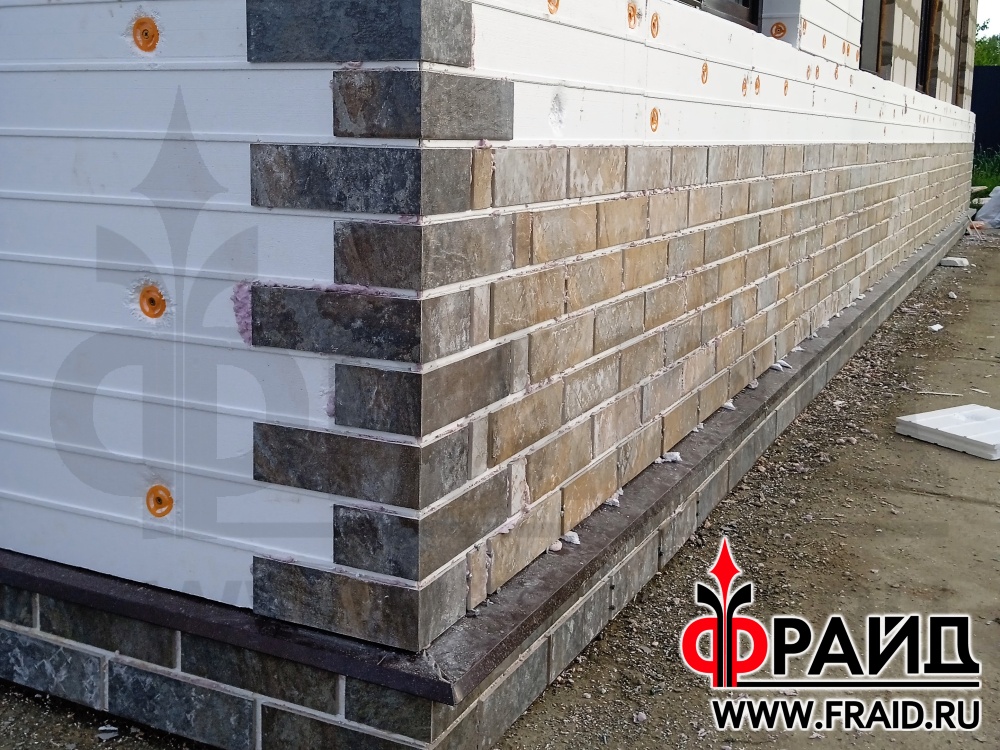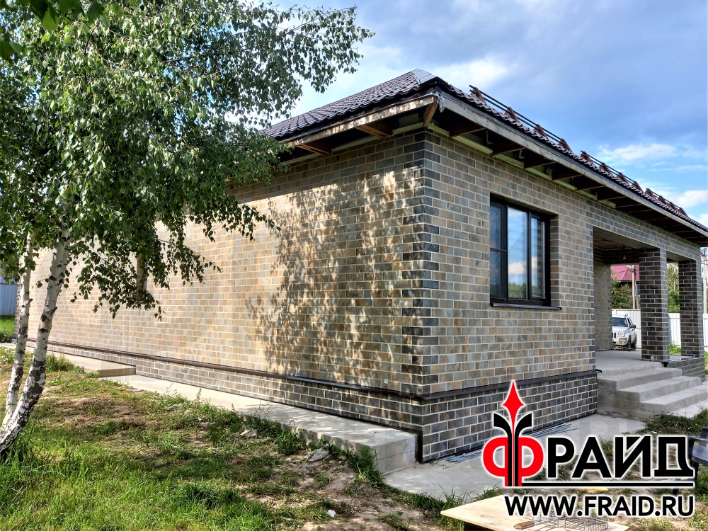 Термопанели Фрайд Комплект с керамогранитом "под кирпич" Kerama Marazzi сланец бежевый и темный. Дом из пеноблоков.
