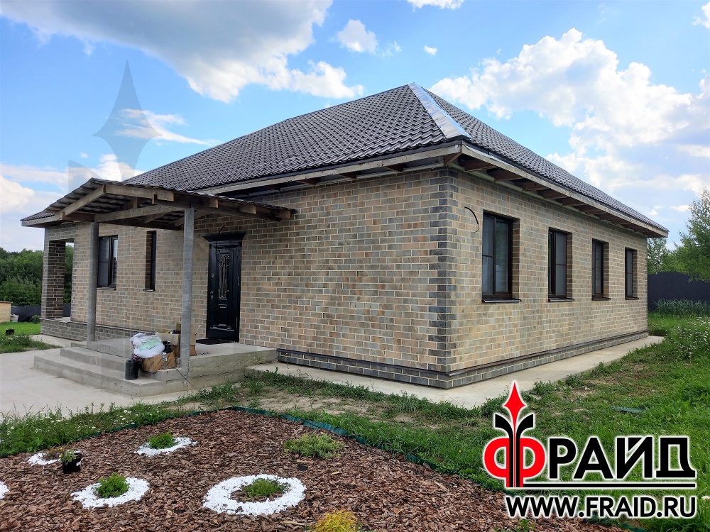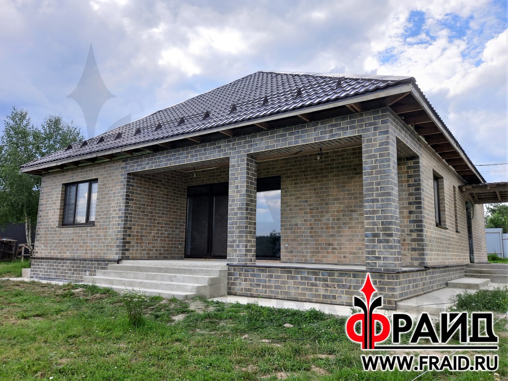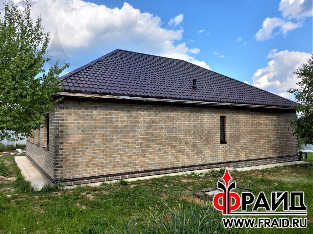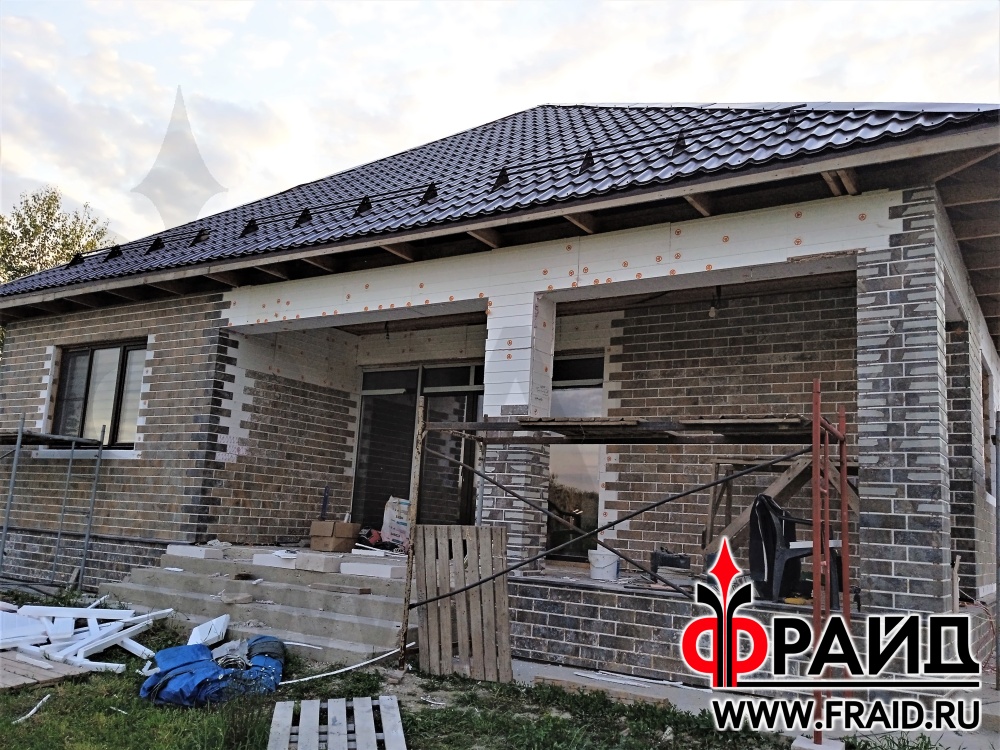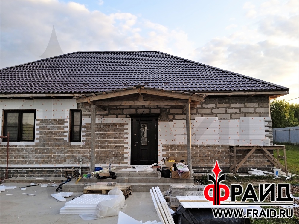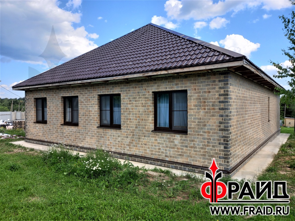 Термопанели Фрайд Комплект с керамогранитом "под кирпич" Kerama Marazzi сланец бежевый и темный. Дом из пеноблоков.