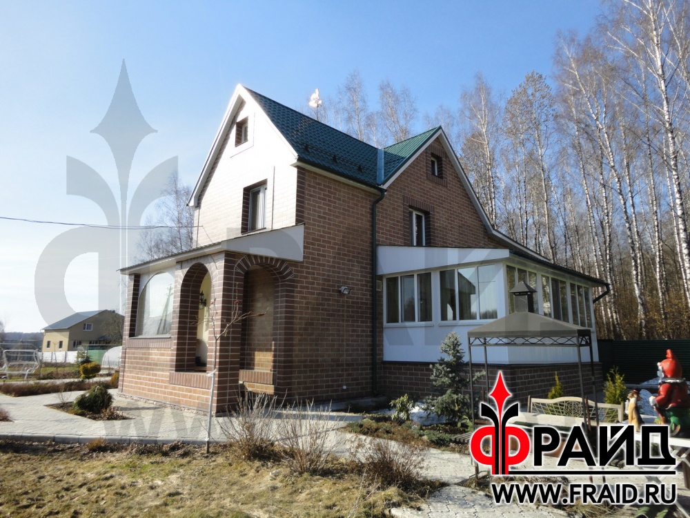 Облицовка и утепление дома термопанелями Фрайд с глазурованной керамикой Сокол FN07.