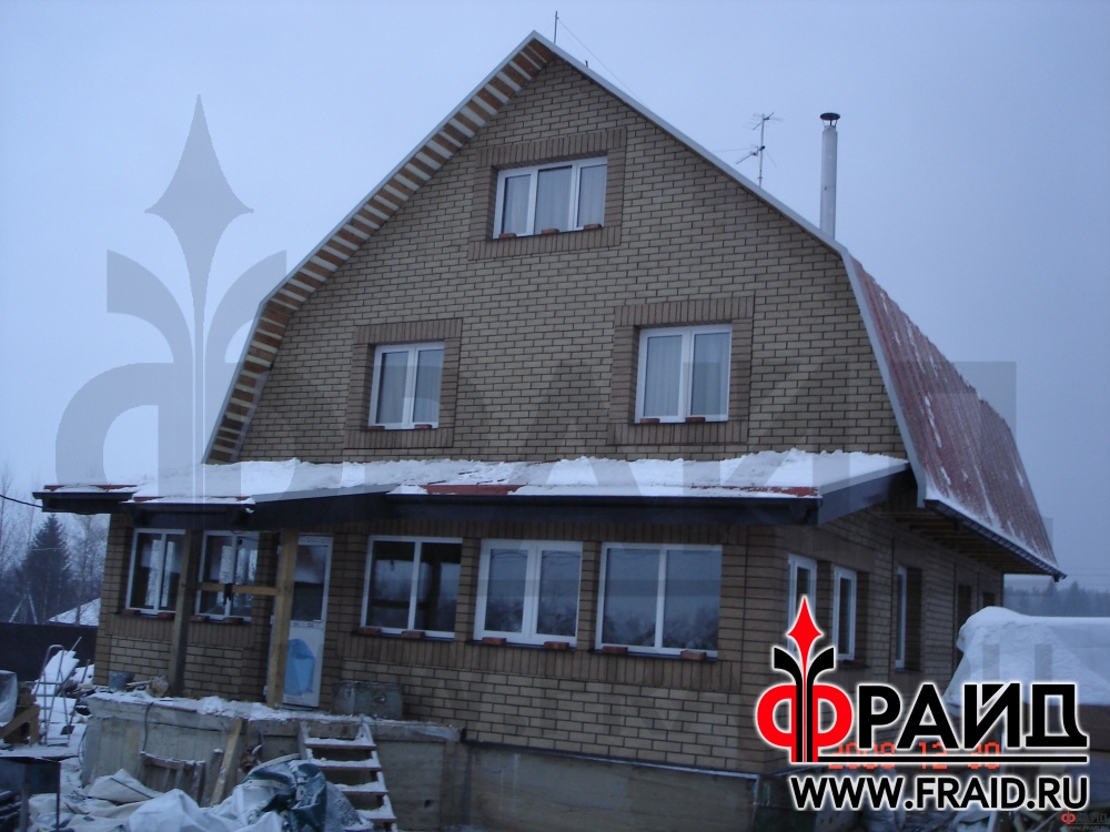 Облицовка дома термопанелями Фрайд с керамогранитом Estima AN01. Дом с отделкой