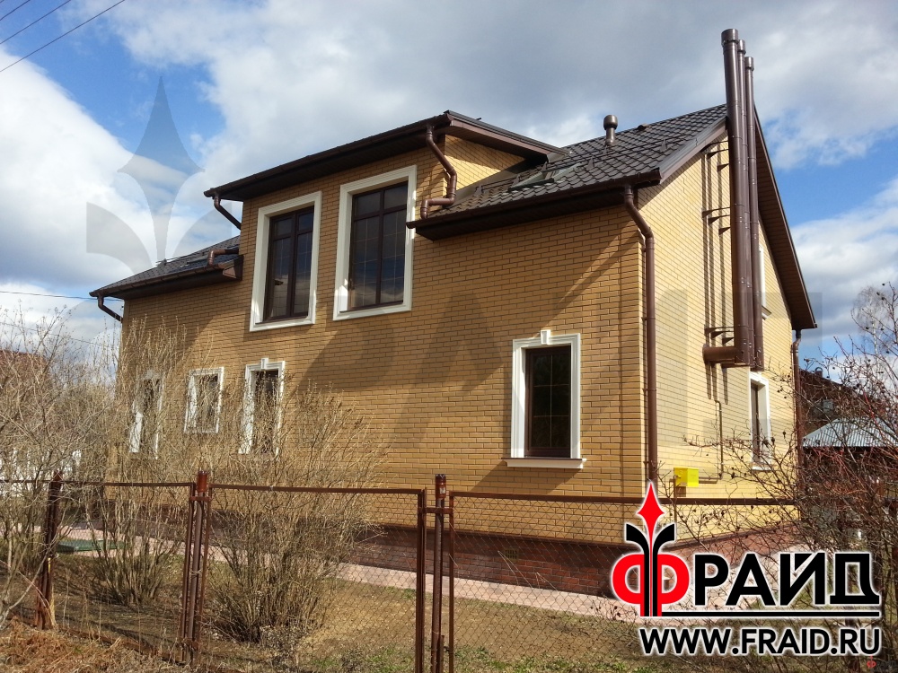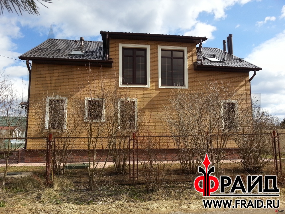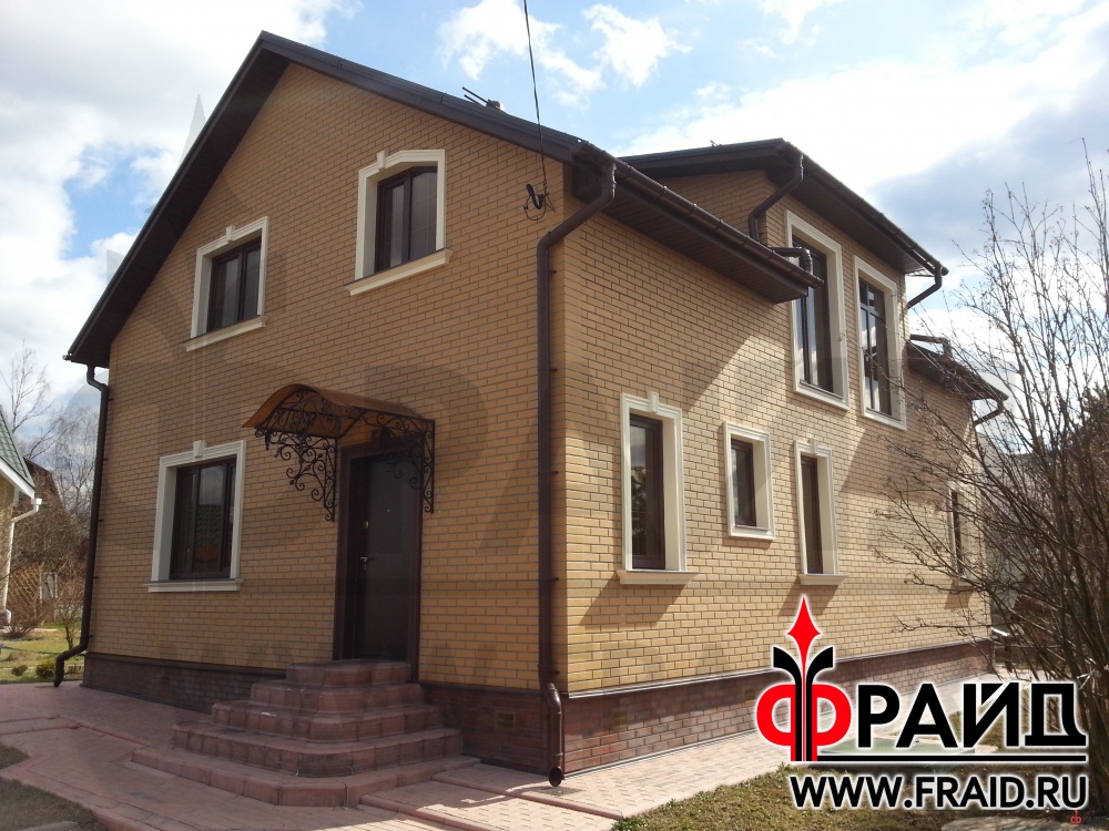 Облицовка дома термопанелями Фрайд с клинкерной плиткой Опочно Simple Sand 3D. Дом с отделкой