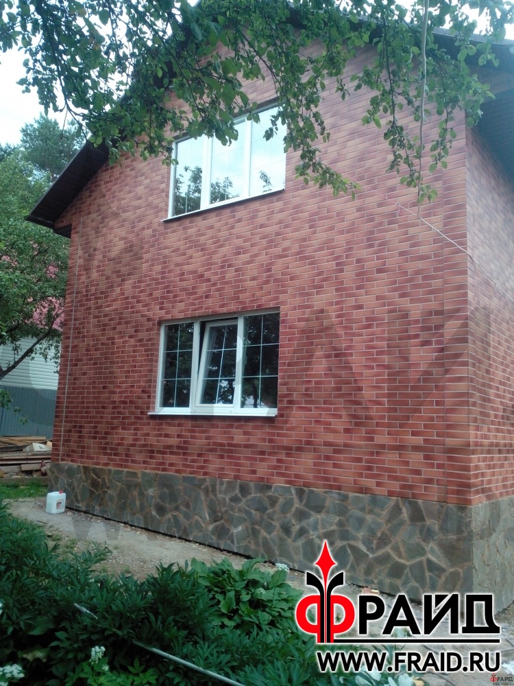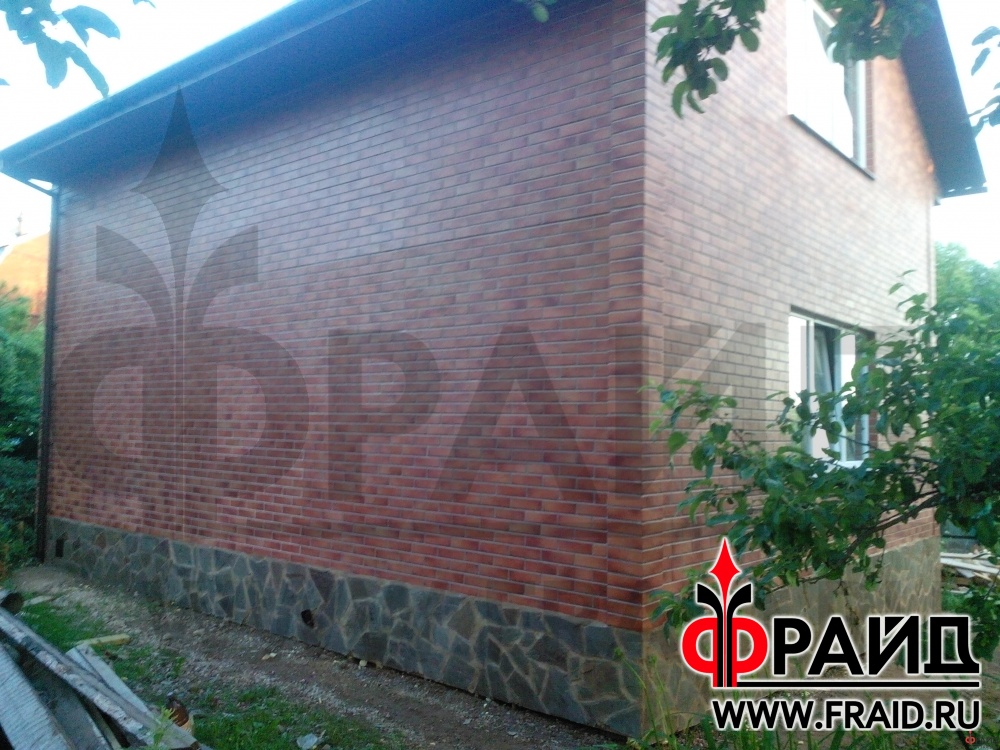 Облицовка дома термопанелями Фрайд с клинкерной плиткой Опочно Solar Orange. Дом с отделкой