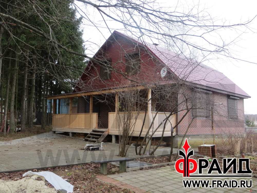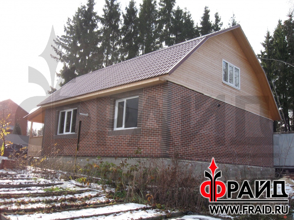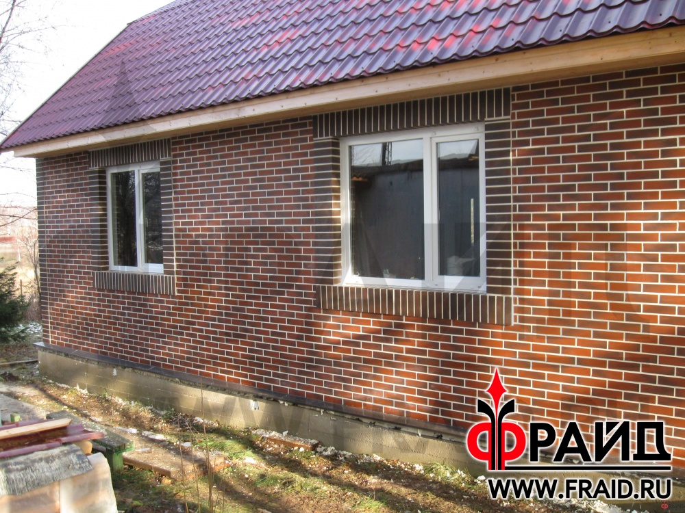 Облицовка дома термопанелями Фрайд с клинкерной плиткой Опочно Shadow Red.