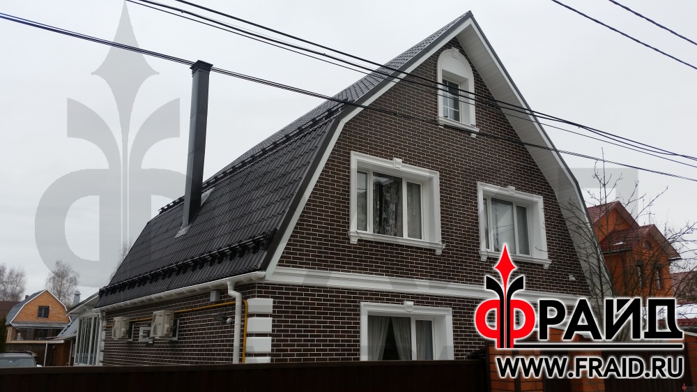 Отделка дома термопанелями Фрайд с клинкерной плиткой Опочно Shadow Brown 3D.