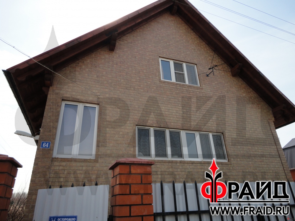 Отделка дома термопанелями Фрайд с глазурованной керамикой Сокол FN07. Дом с отделкой