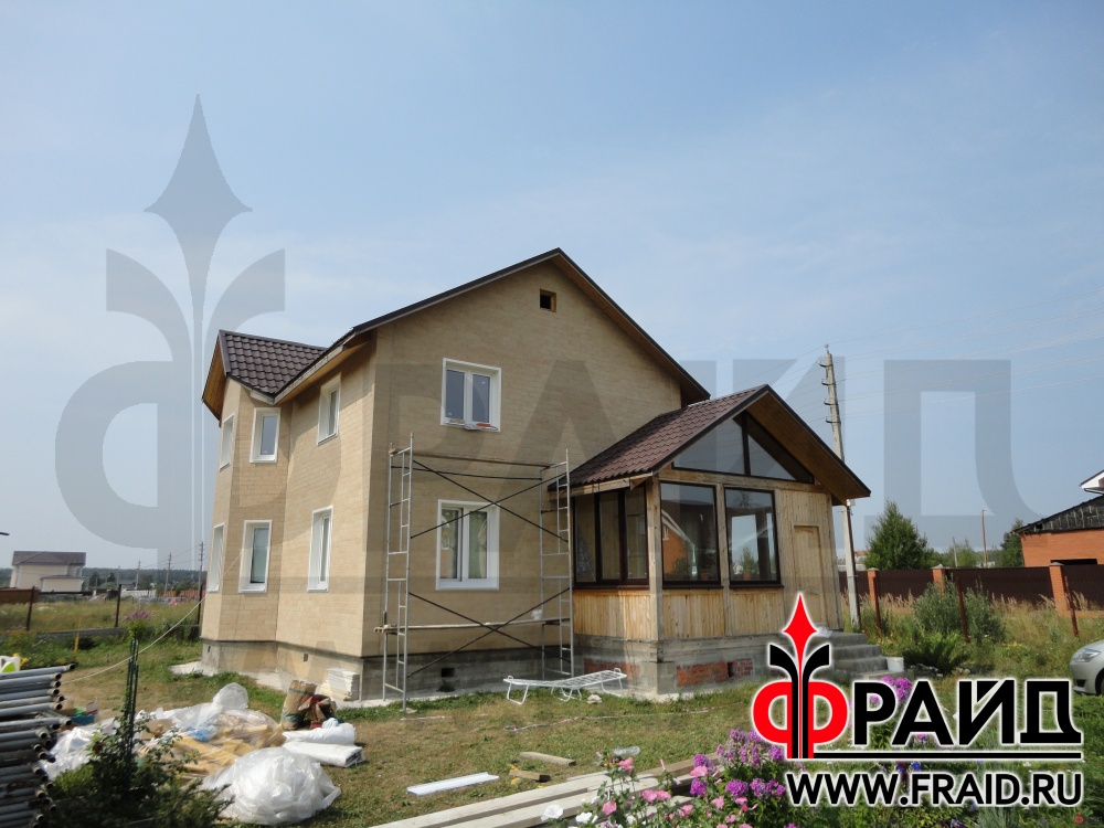 Отделка и утепление дома термопанелями Фрайд с керамогранитом Estima AN01.