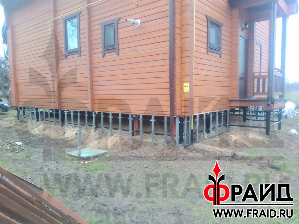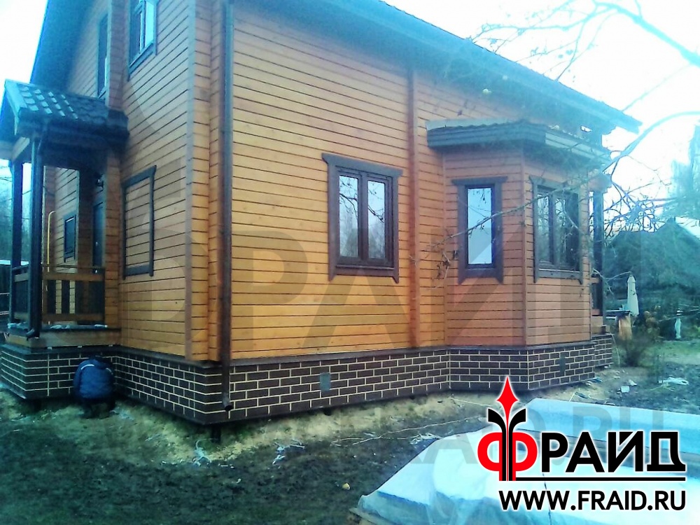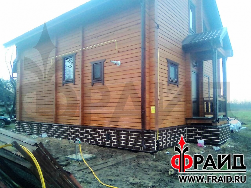 Отделка свайного фундамента термопанелями Фрайд Премиум с клинкером Керамин Амстердам Дом с отделкой