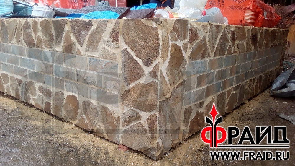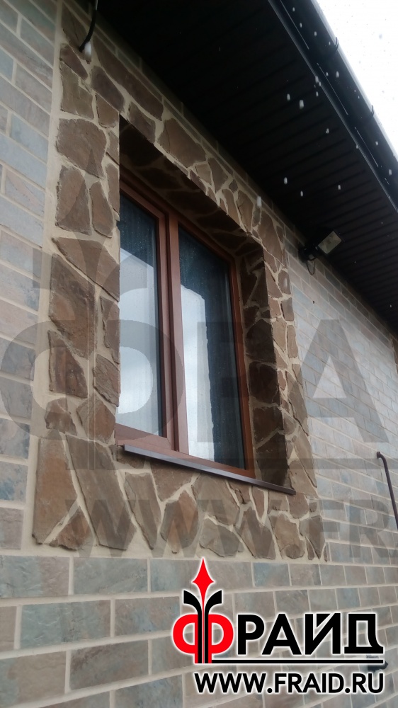 Теплый фасад из термопанелей Фрайд с керамогранитом Kerama Marazzi Сланец и натуральным камнем Песчаник