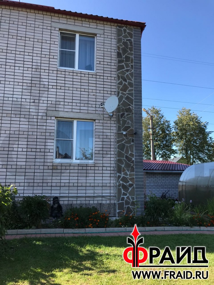 Утепление углов дома из силикатного кирпича термопанелями Фрайд Премиум с камнем Песчаник и керамогранитом Estima AN05