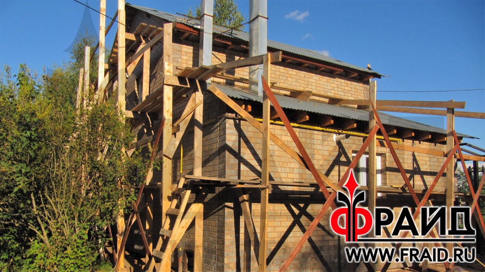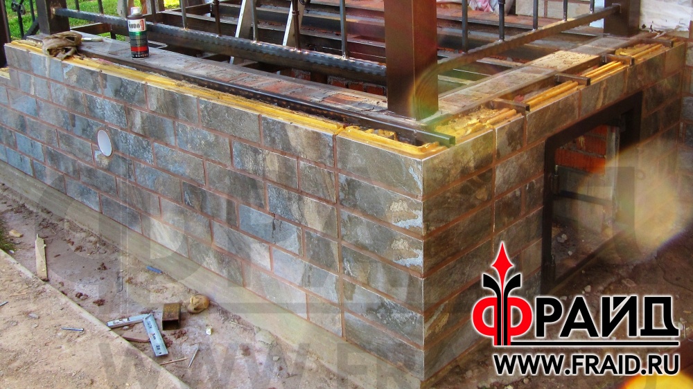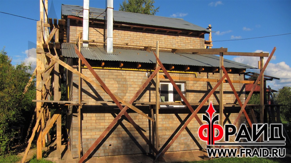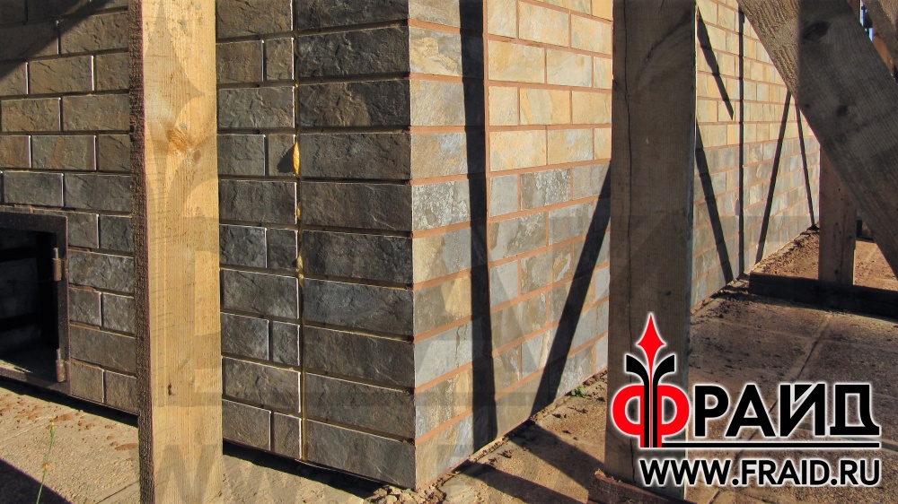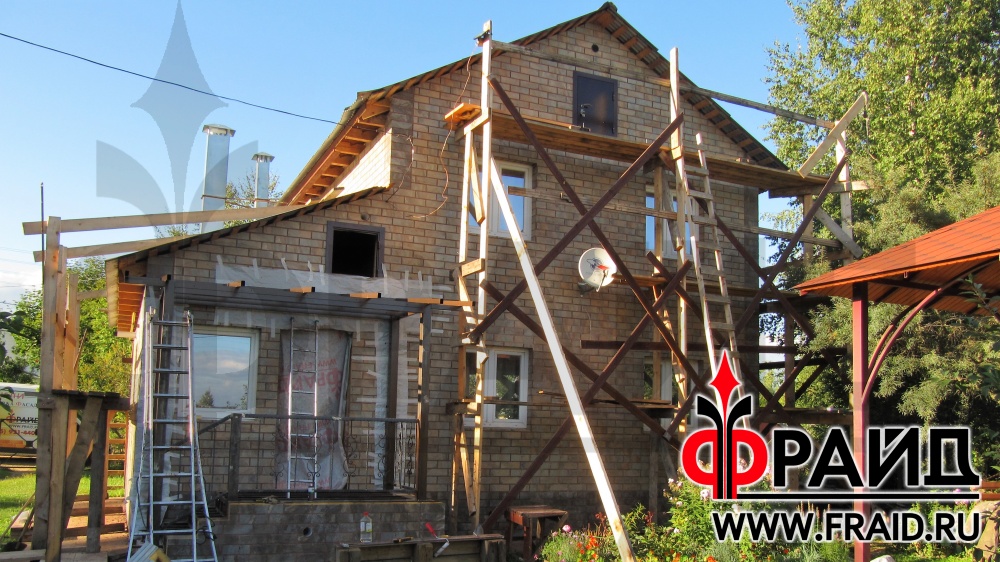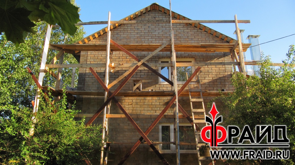 Монтаж фасадной системы Фрайд Премиум с керамогранитом Kerama Marazzi Сланец Дом с отделкой