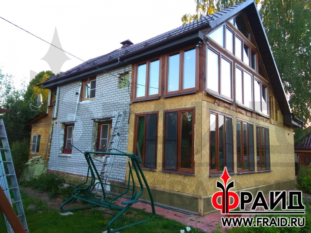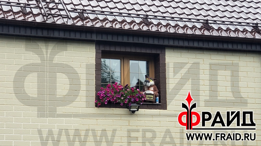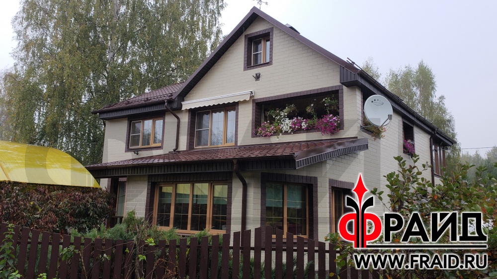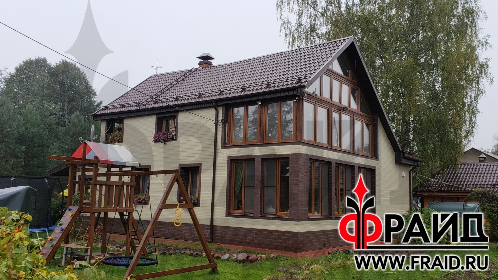 Дом из силикатного кирпича отделывается термопанелями Фрайд Премиум с керамогранитом Квадро Декор и Керамин Амстердам