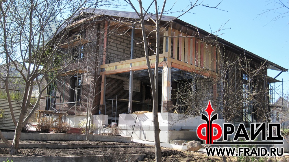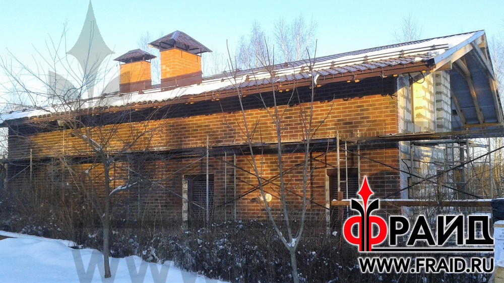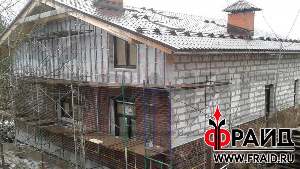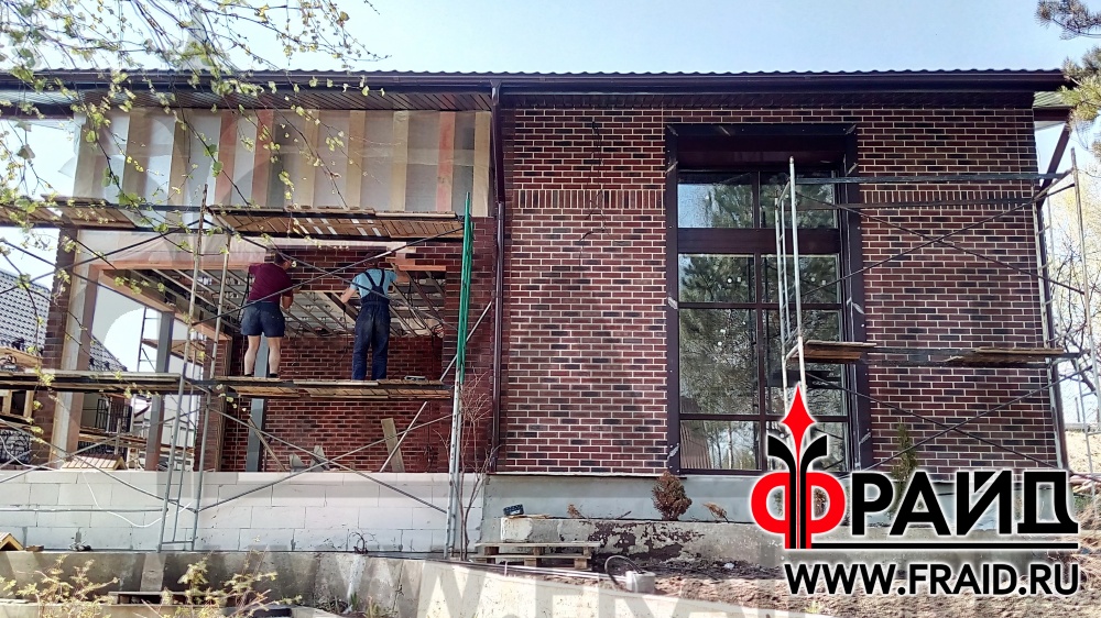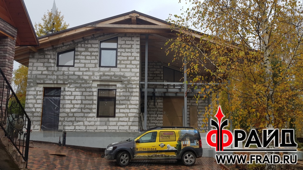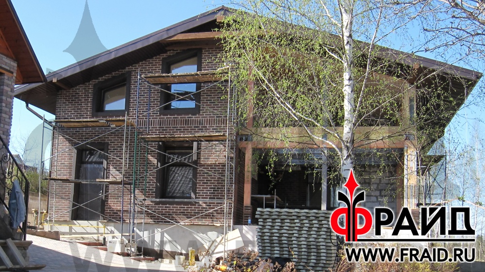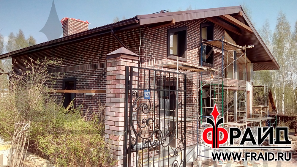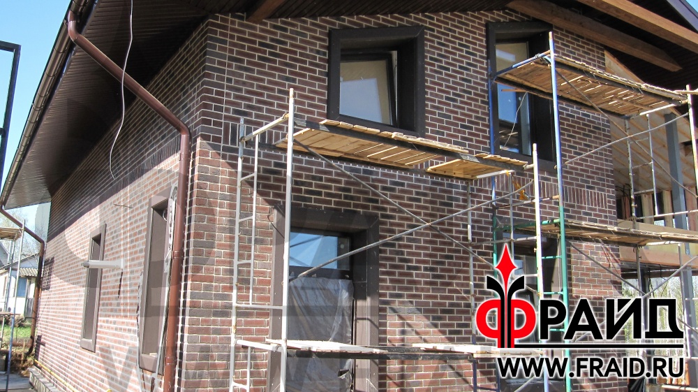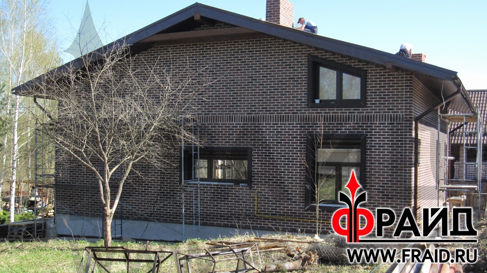 Дом из пеноблока утепляется термопанелями Фрайд с клинкером Feldhaus R663NF14 и украшается фасадным декором Фрайд Декор