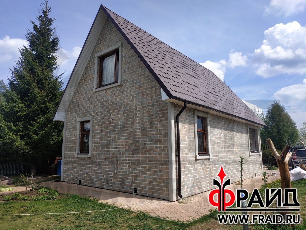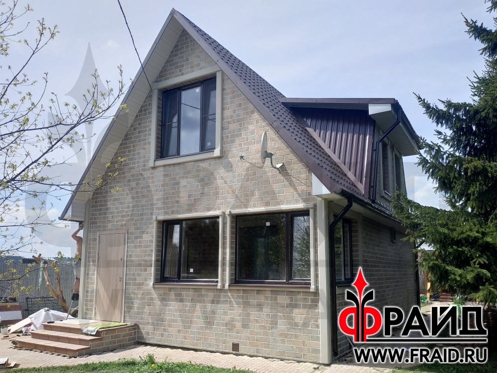 Утепление деревянного каркасного дома термопанелями Фрайд Премиум с керамогранитом Kerama Marazzi с использованием элементов Фрайд Декор
