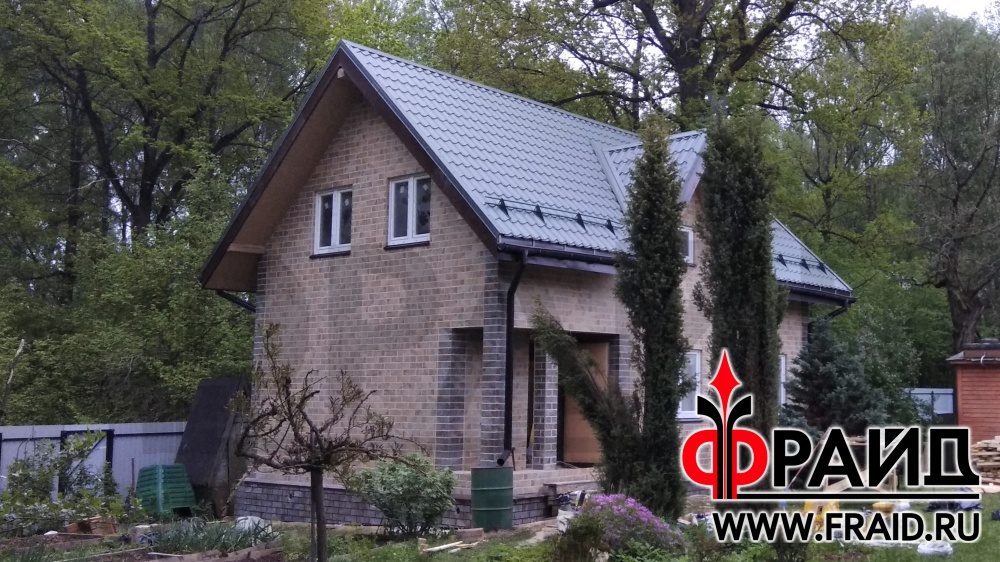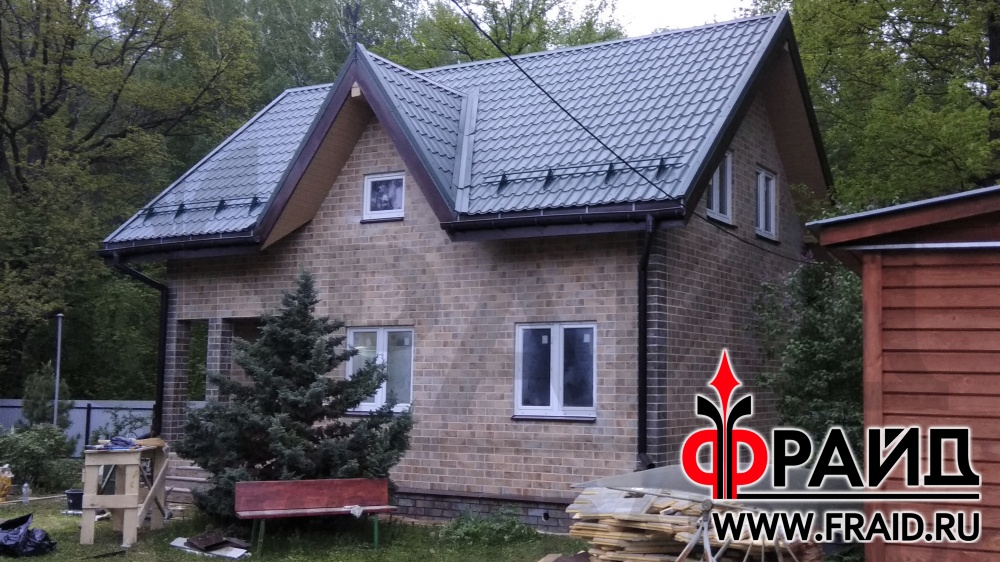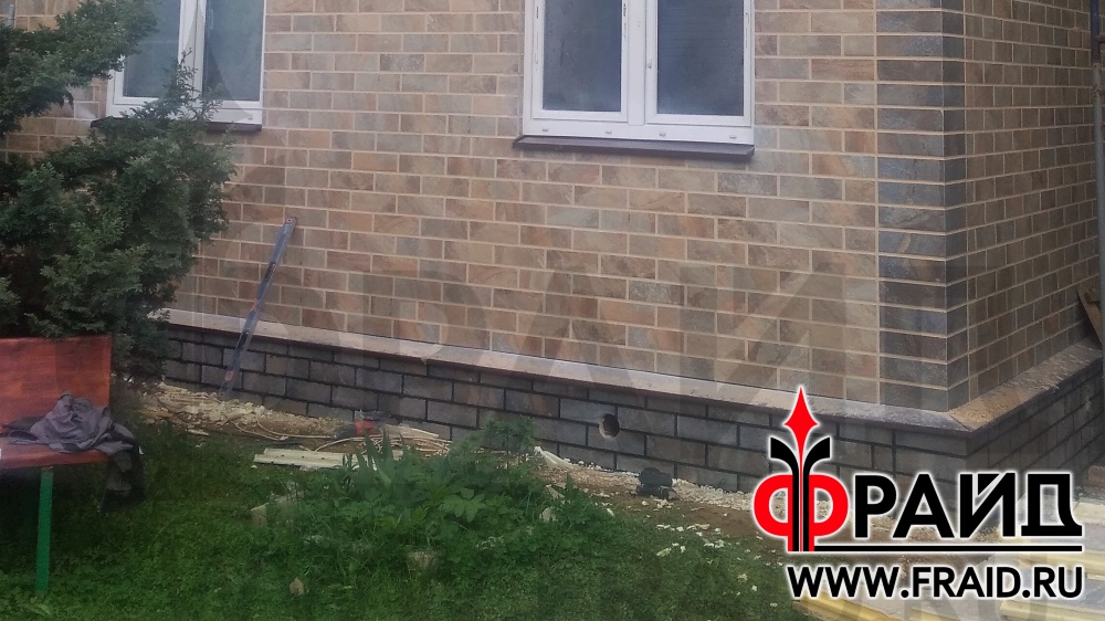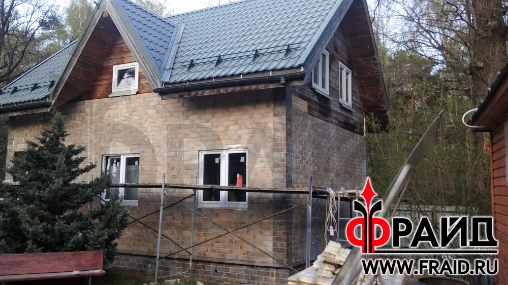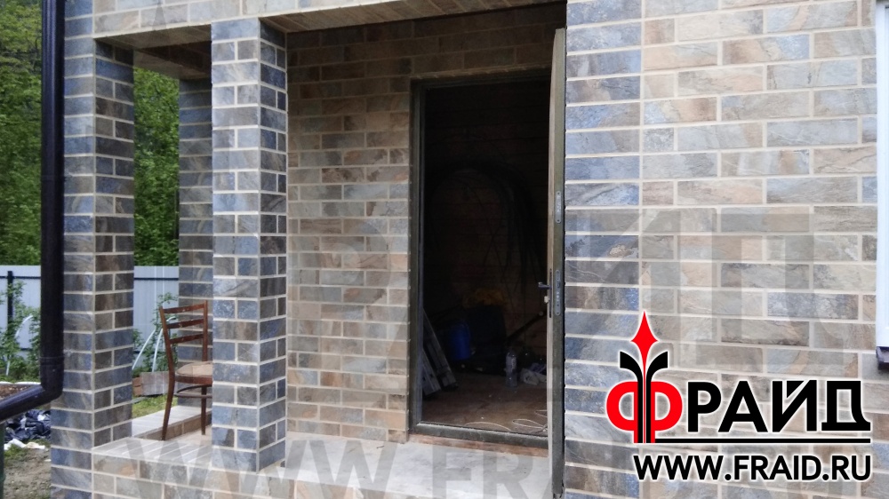 Реставрация старого брусового дома термопанелями Фрайд Премиум с керамогранитом Kerama Marazzi сланец бежевый и темный.