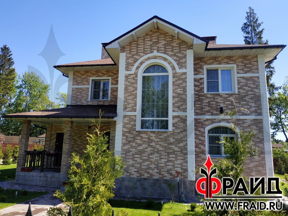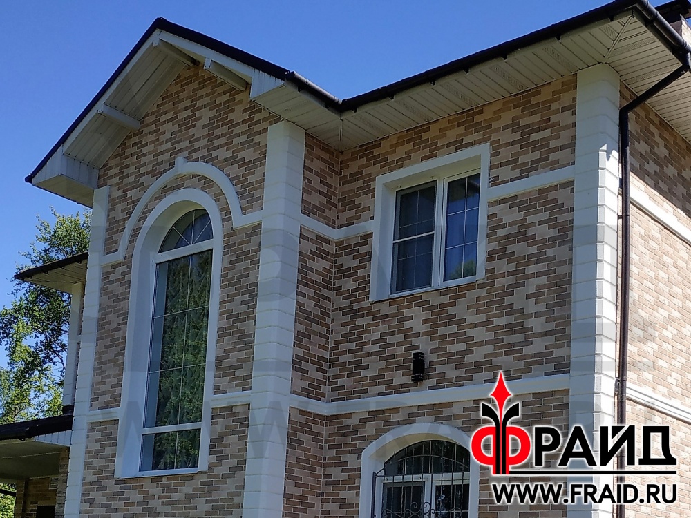 Украшение кирпичного дома фасадным декором системы Фрайд Декор.