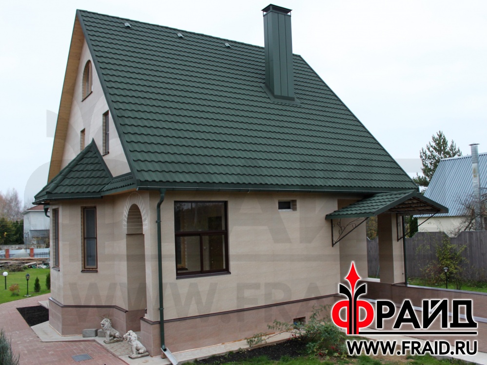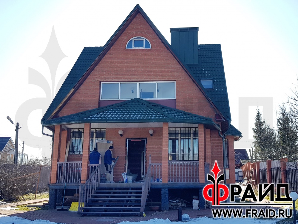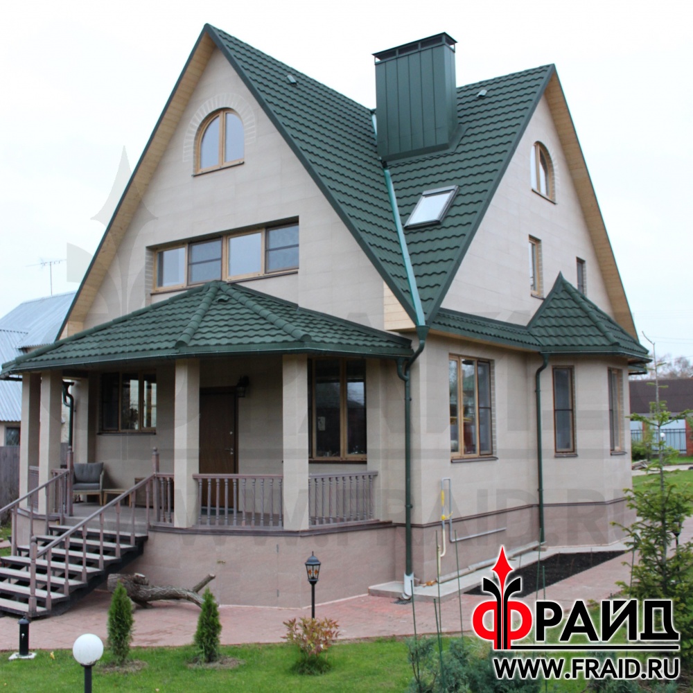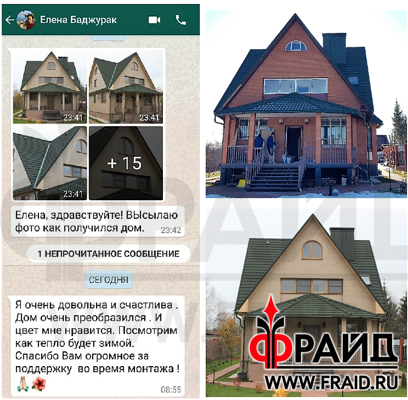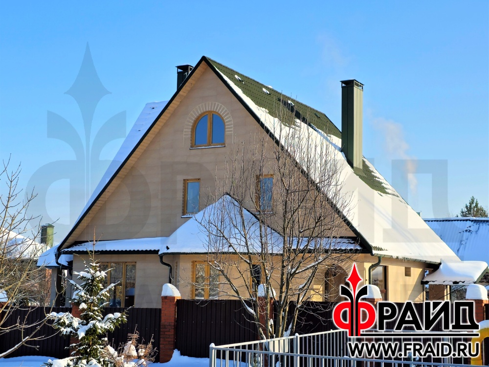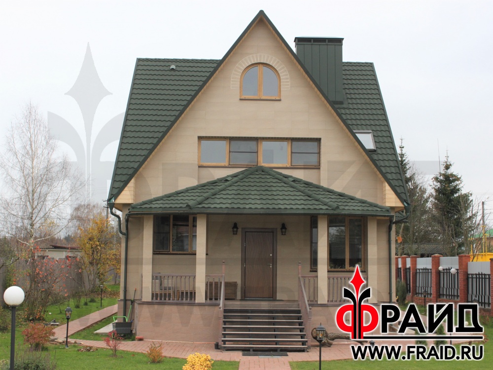Дом кирпичный, самостоятельный монтаж - термопанели Фрайд Премиум бесшовные с крупноформатным керамогранитом Estima NG02, NG04.