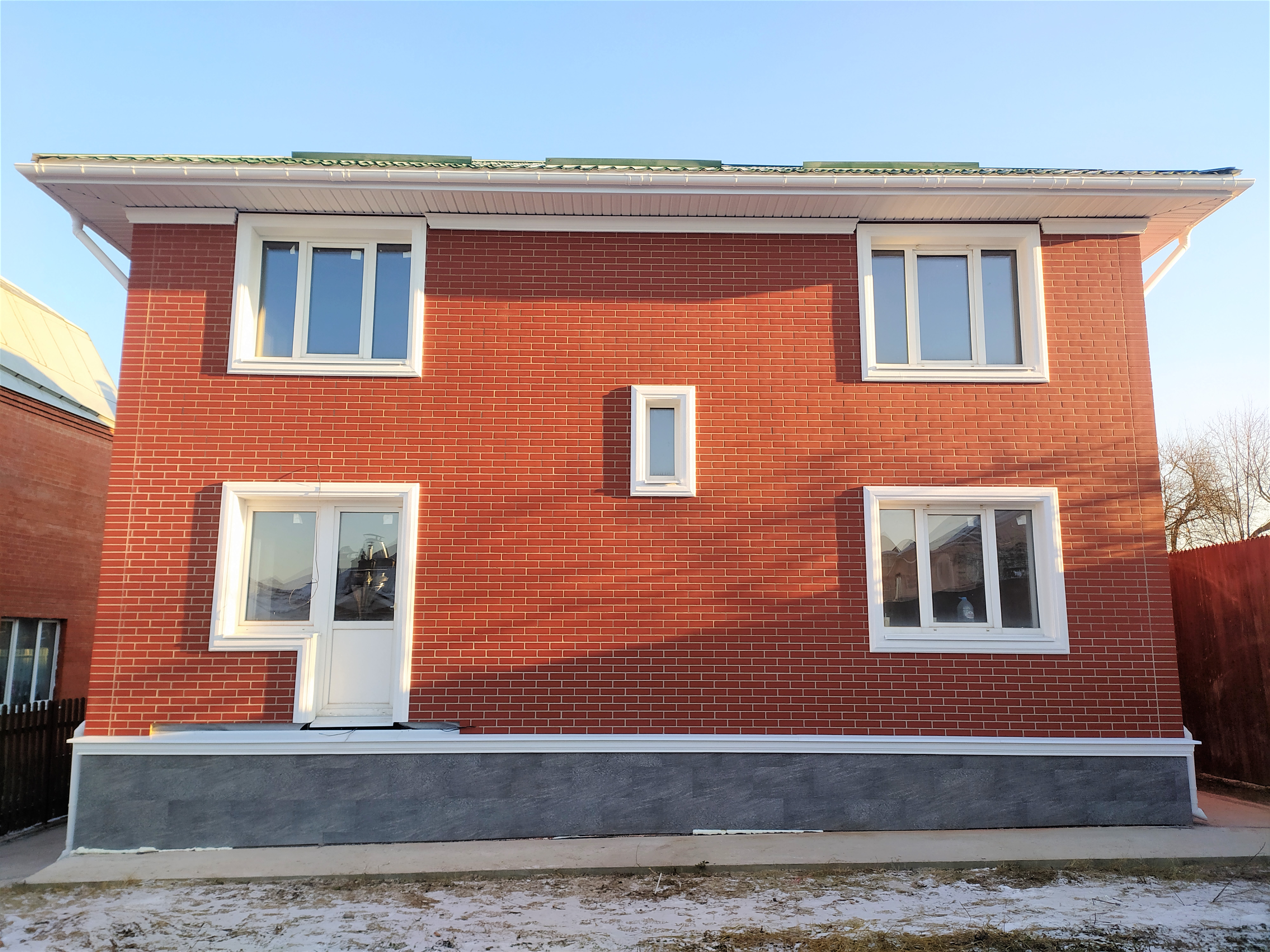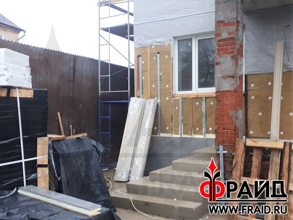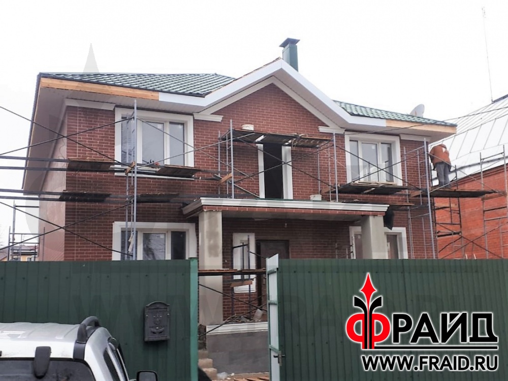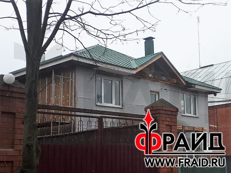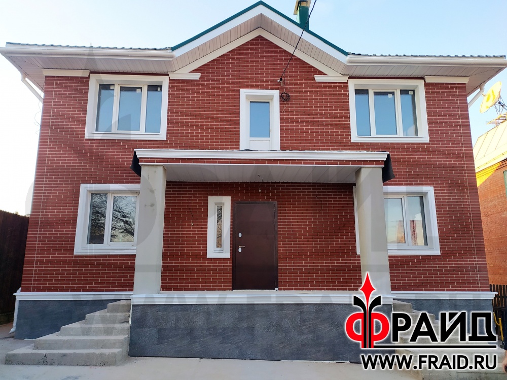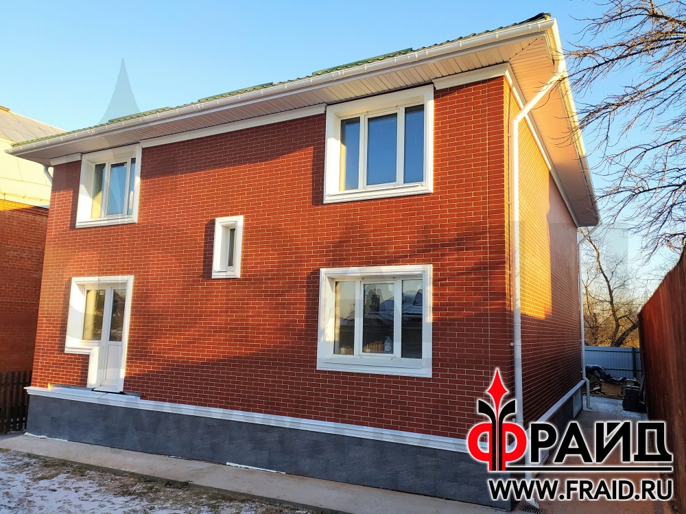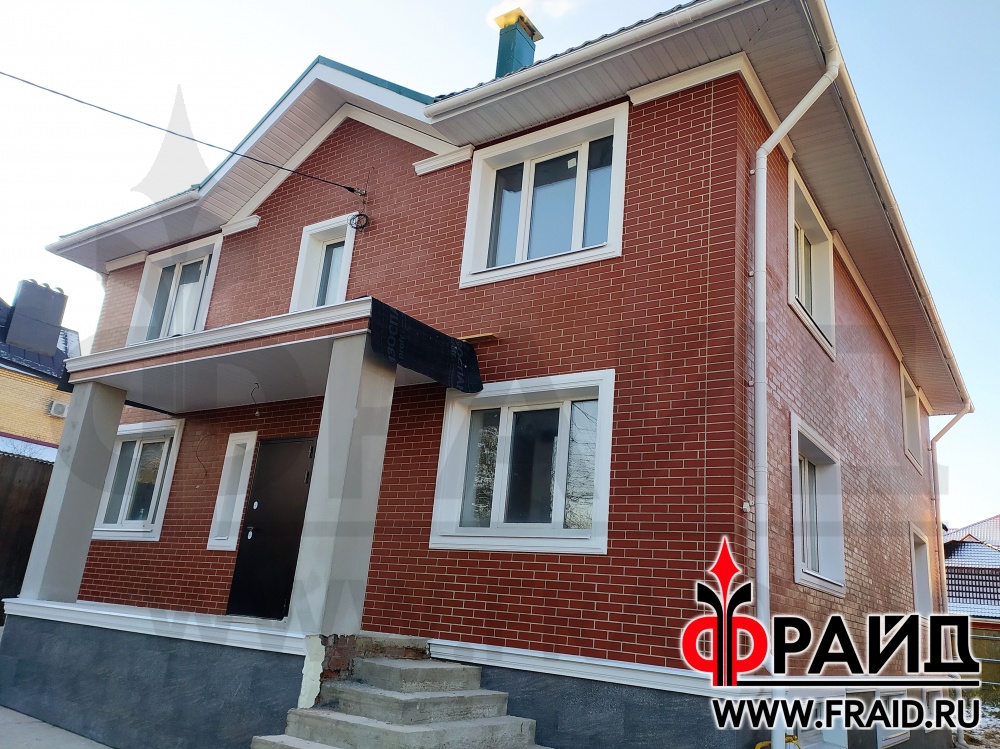 Участвуем в реконструкции старого каркасного дома. На фасаде - термопанели Фрайд Премиум с клинкерной плиткой Cerrad Gladka Rot, на цоколе - бесшовные термопанели Фрайд Премиум с крупноформатным керамогранитом Estima NG03, на окнах - элементы Фрайд Декор.