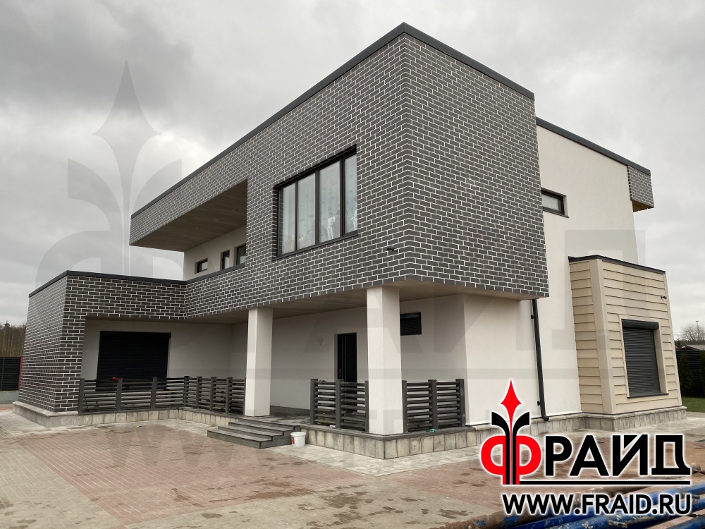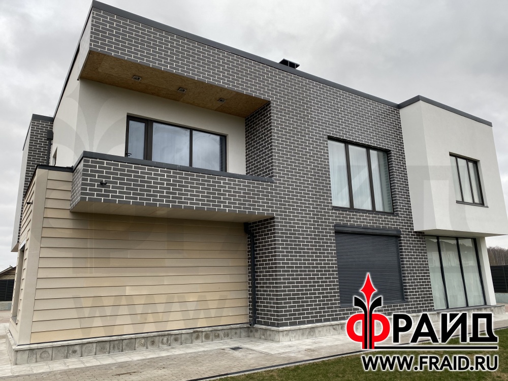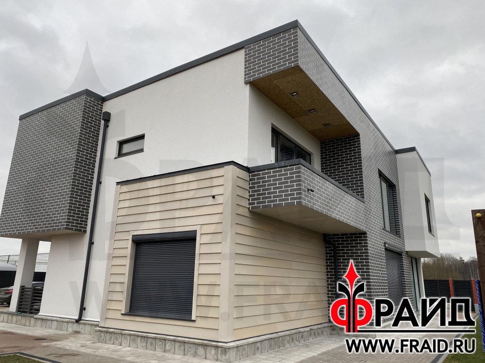 Ремонт Фасада дома из пеноблока. Термопанели Фрайд Премиум с керамогранитом Estima LF04, Фрайд Сайдинг, Фрайд Декор.