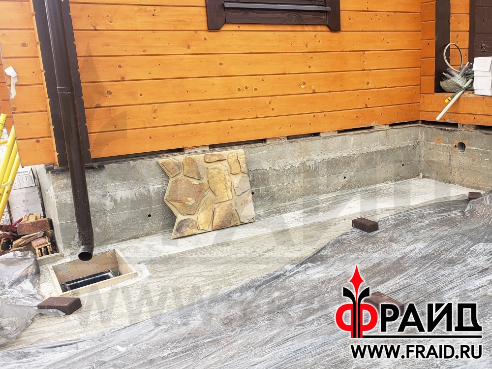 Бетонный цоколь - термопанели Фрайд Премиум с натуральным камнем песчаник красный обожженный.