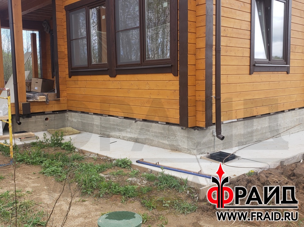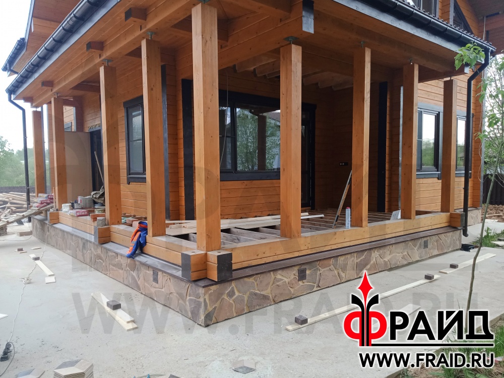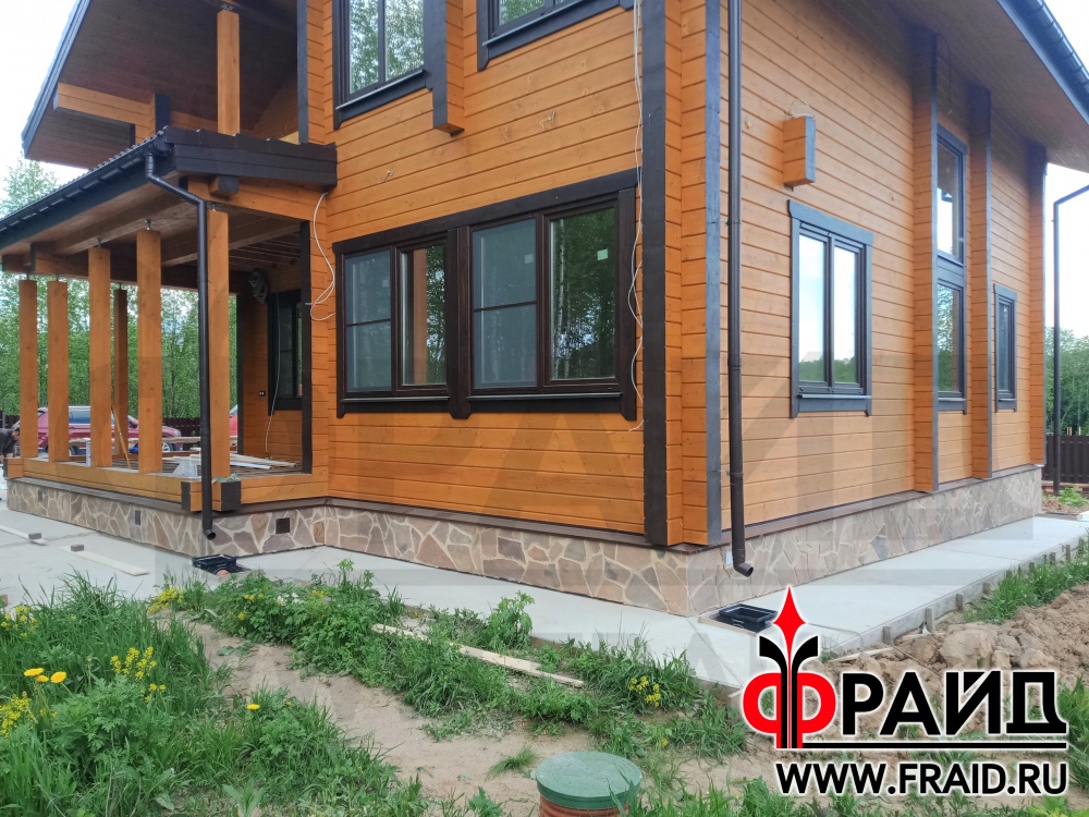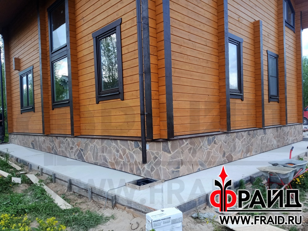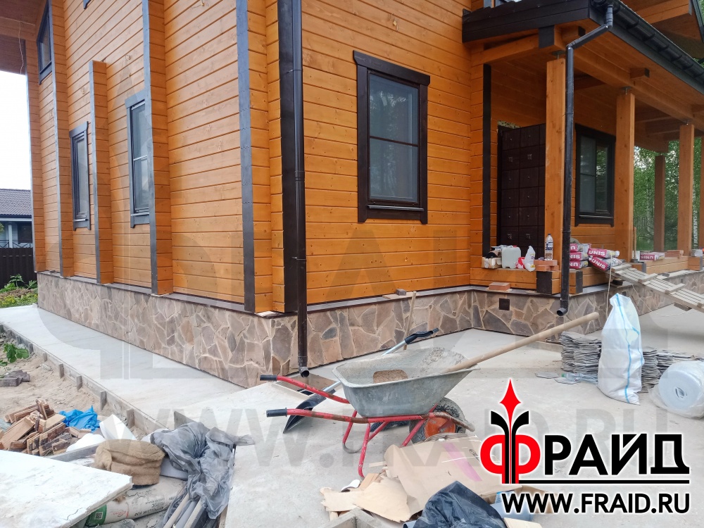 Бетонный цоколь - термопанели Фрайд Премиум с натуральным камнем песчаник красный обожженный. Дом с отделкой