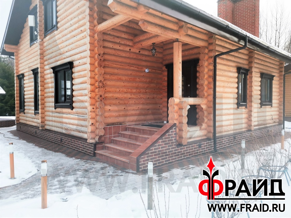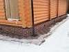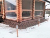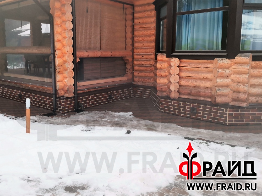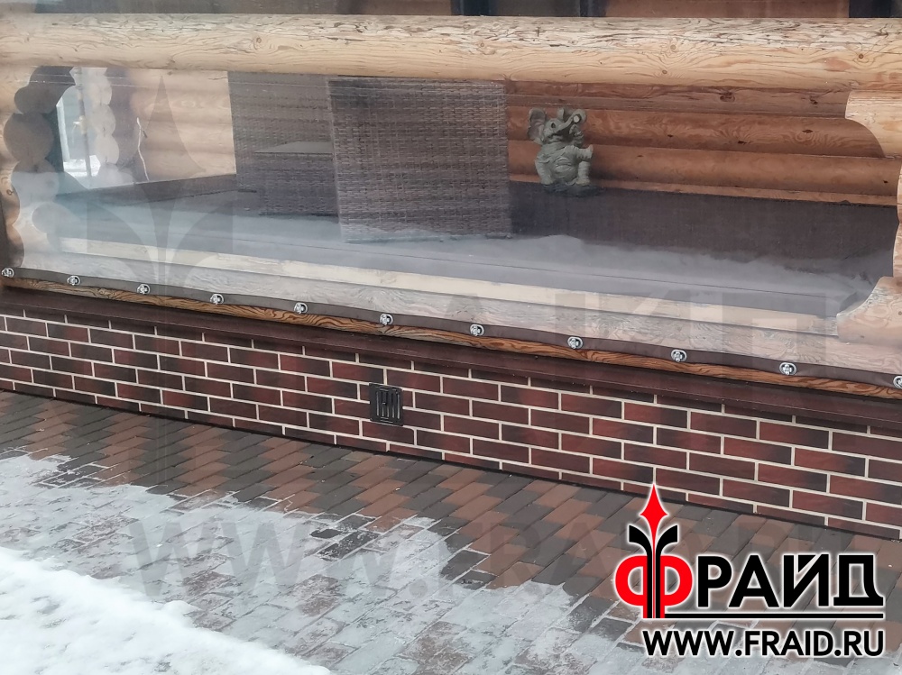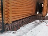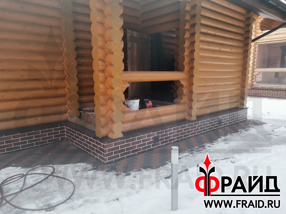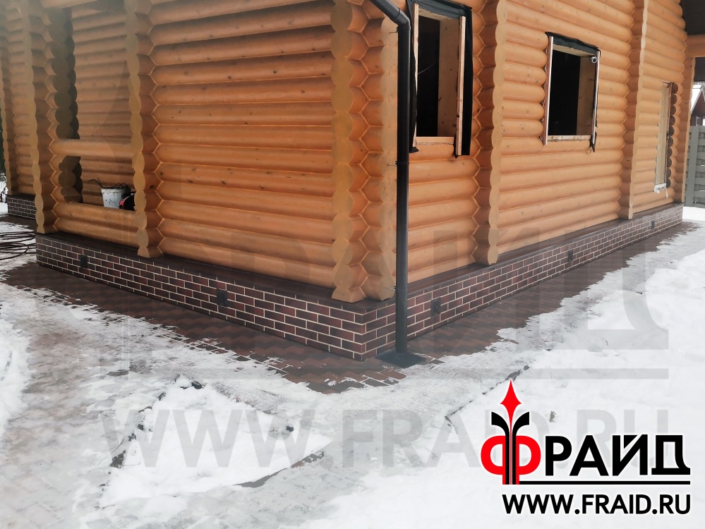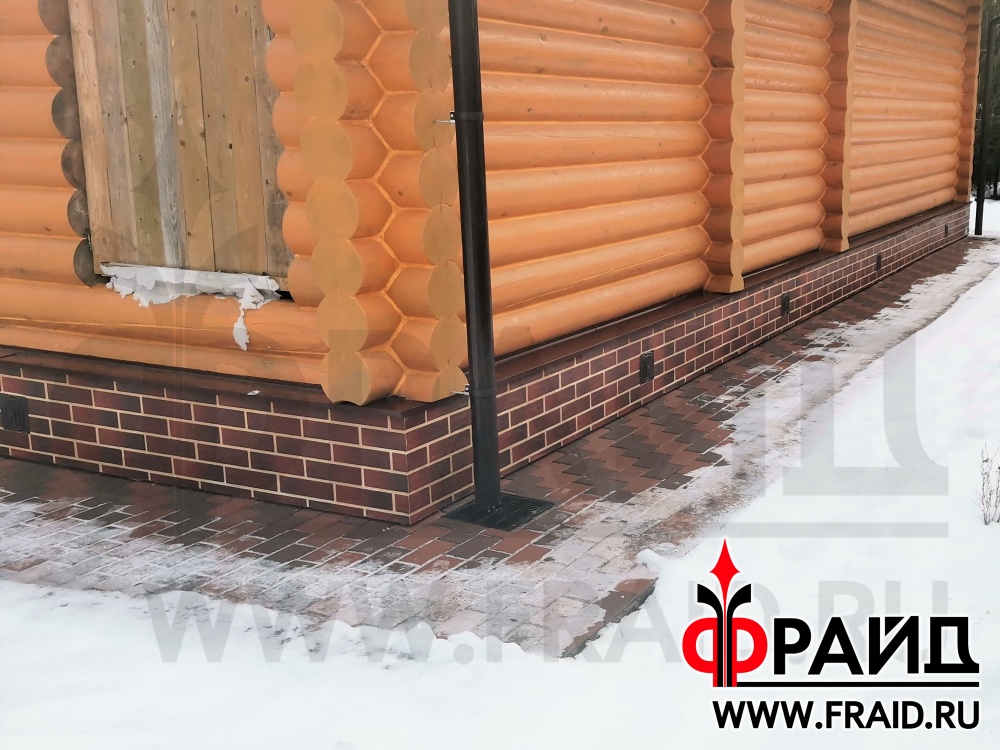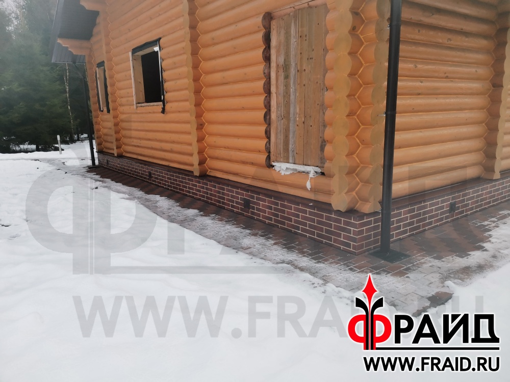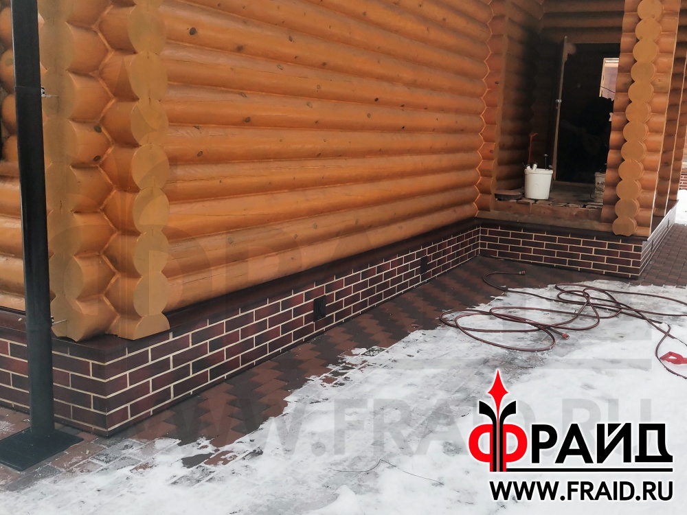 Цоколь деревянного дома бетон - термопанели Фрайд Премиум с клинкерной плиткой Cerrad Gladka Country Wisnia.