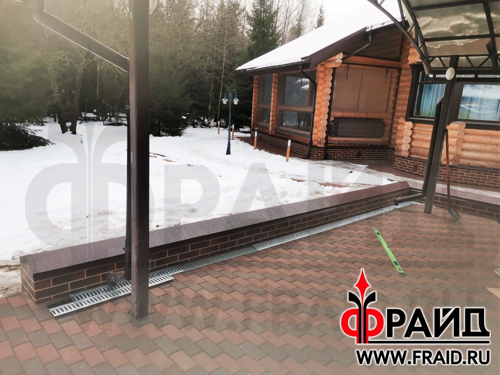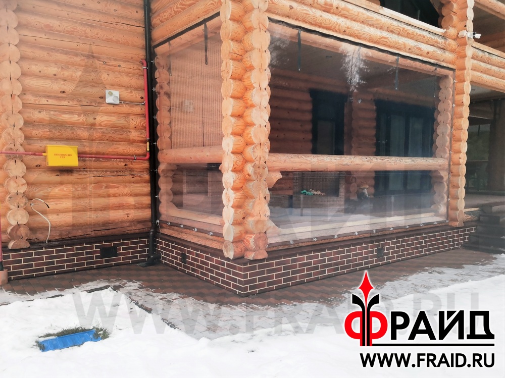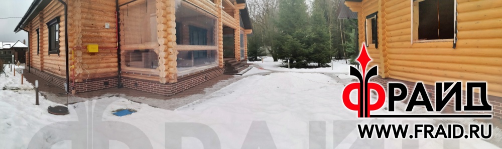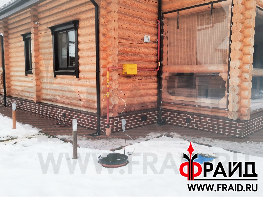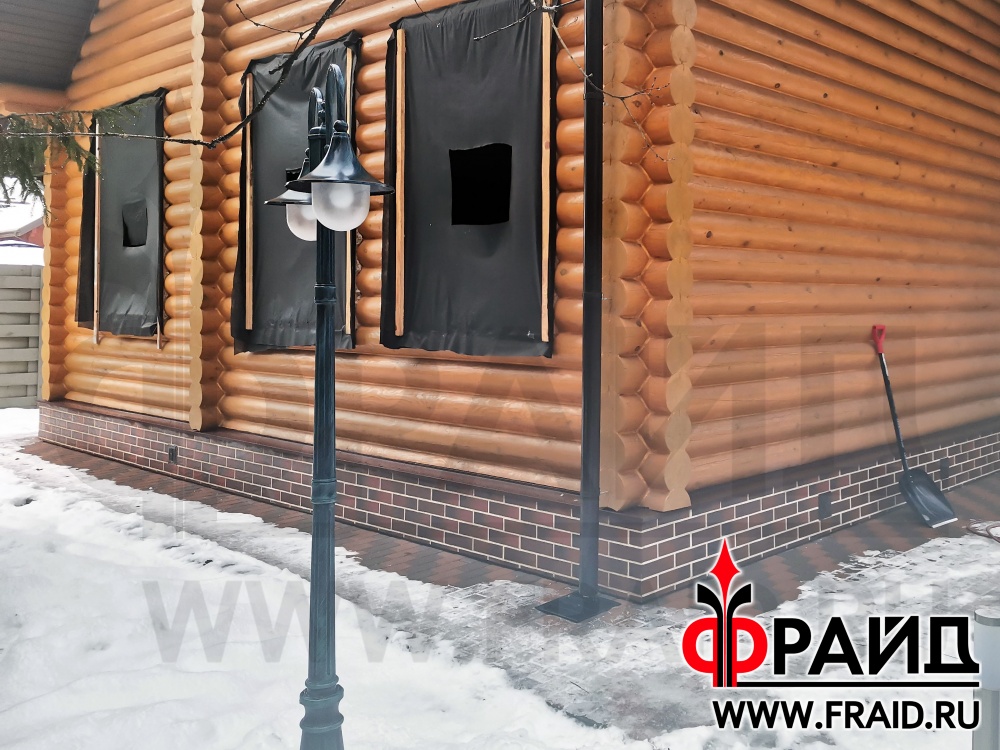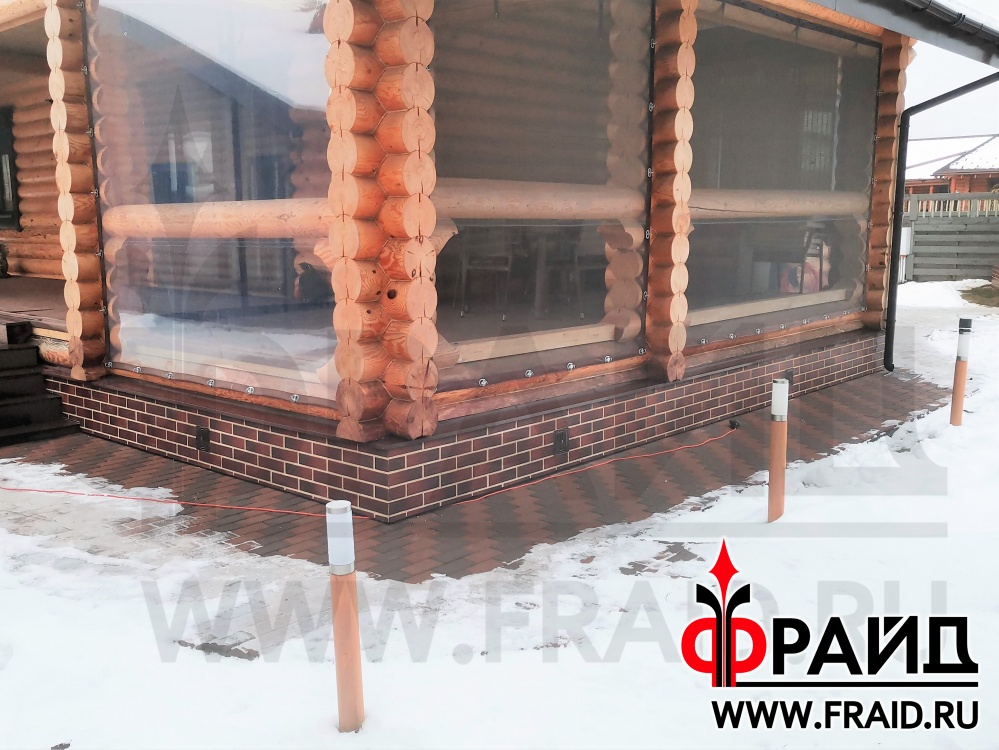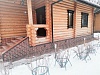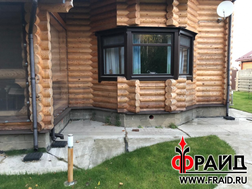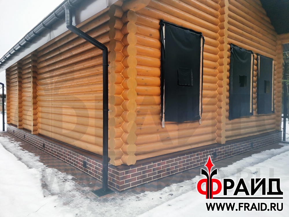 Цоколь деревянного дома бетон - термопанели Фрайд Премиум с клинкерной плиткой Cerrad Gladka Country Wisnia.