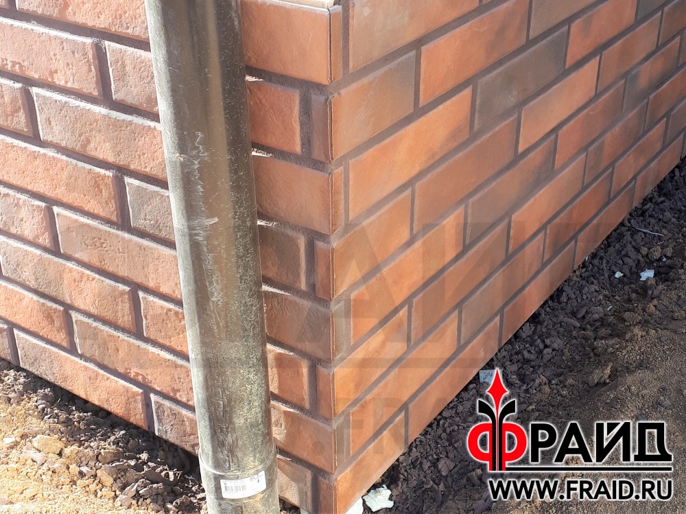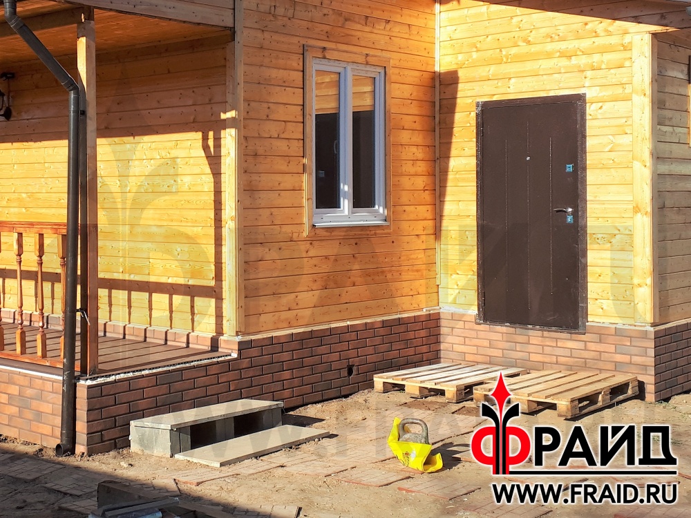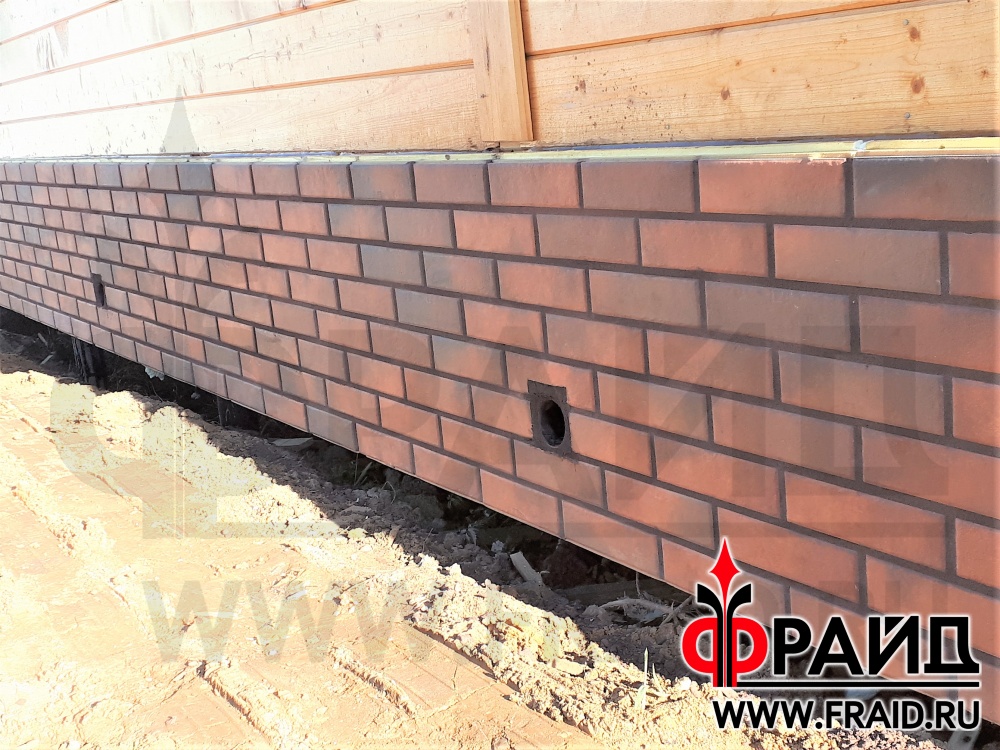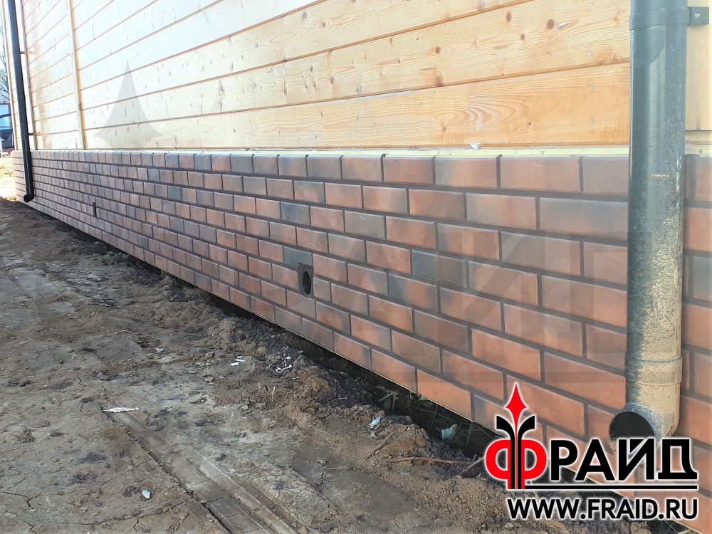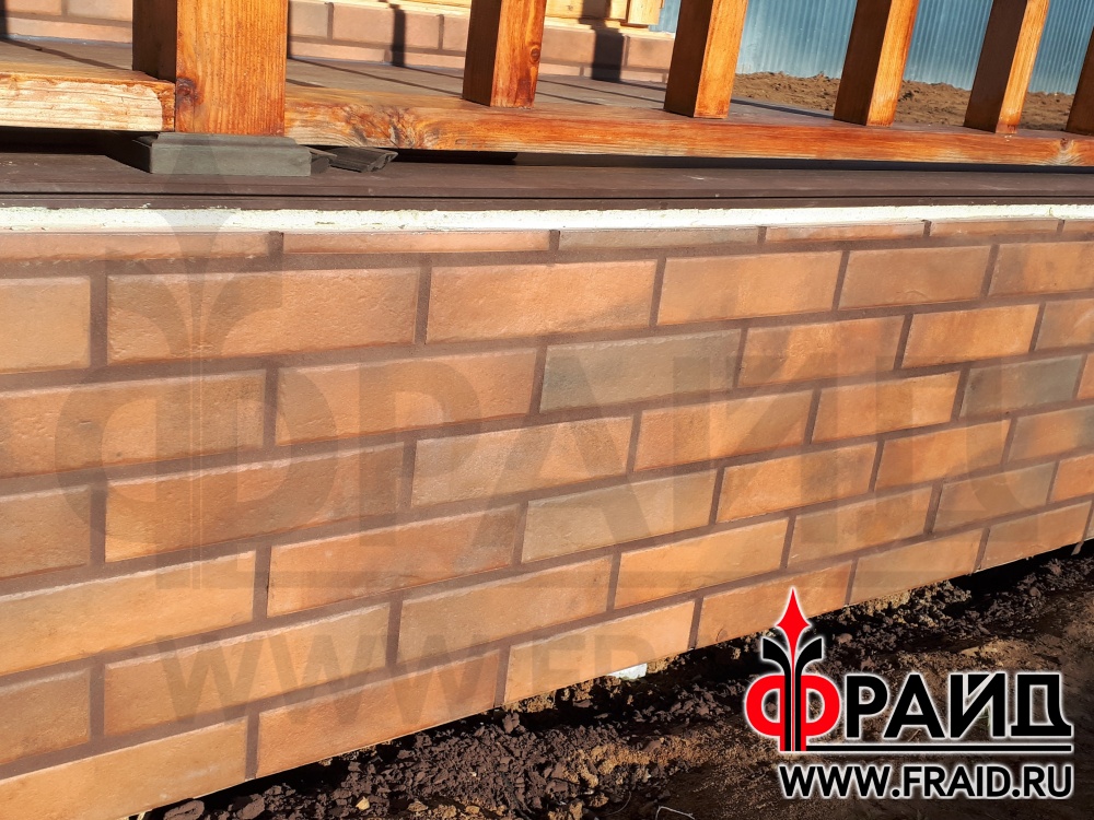 Отделка свайного фундамента деревянного дома. Термопанели Фрайд Премиум с клинкером Cerrad Retro Brick Curry.