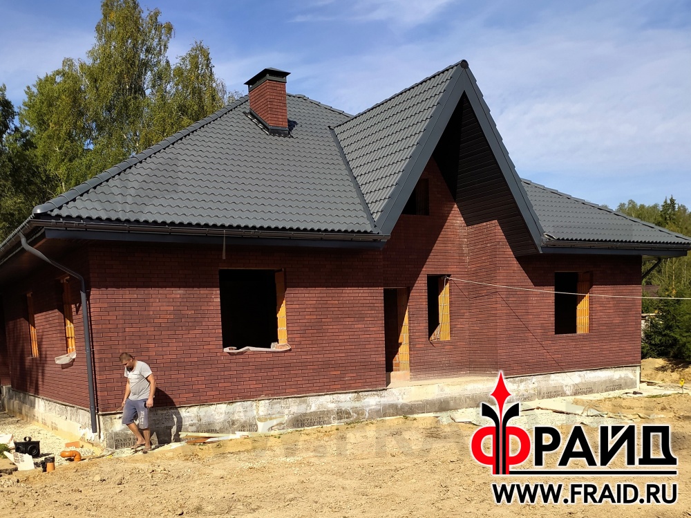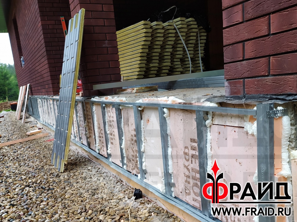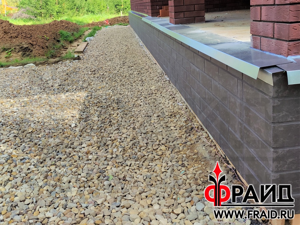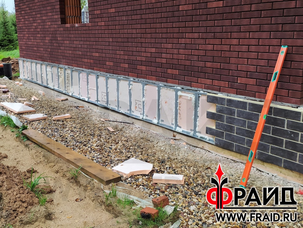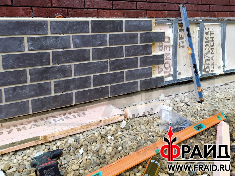 Утепление цоколя кирпичного дома термопанелями Фрайд Премиум с керамогранитом Kerama Marazzi Рубикон Черный.