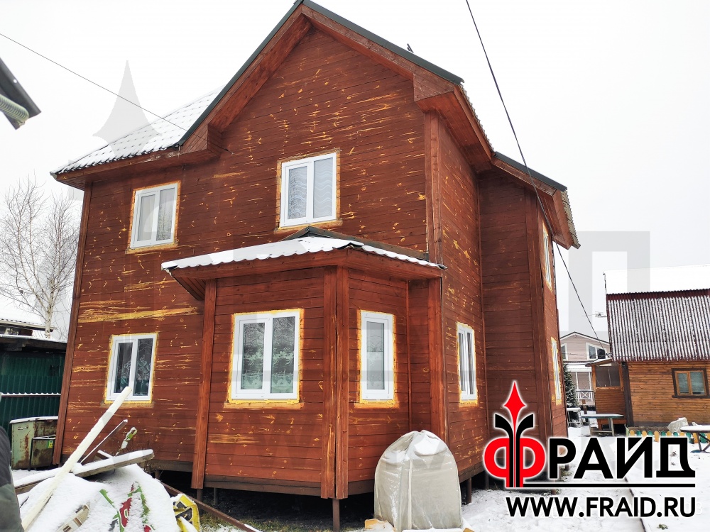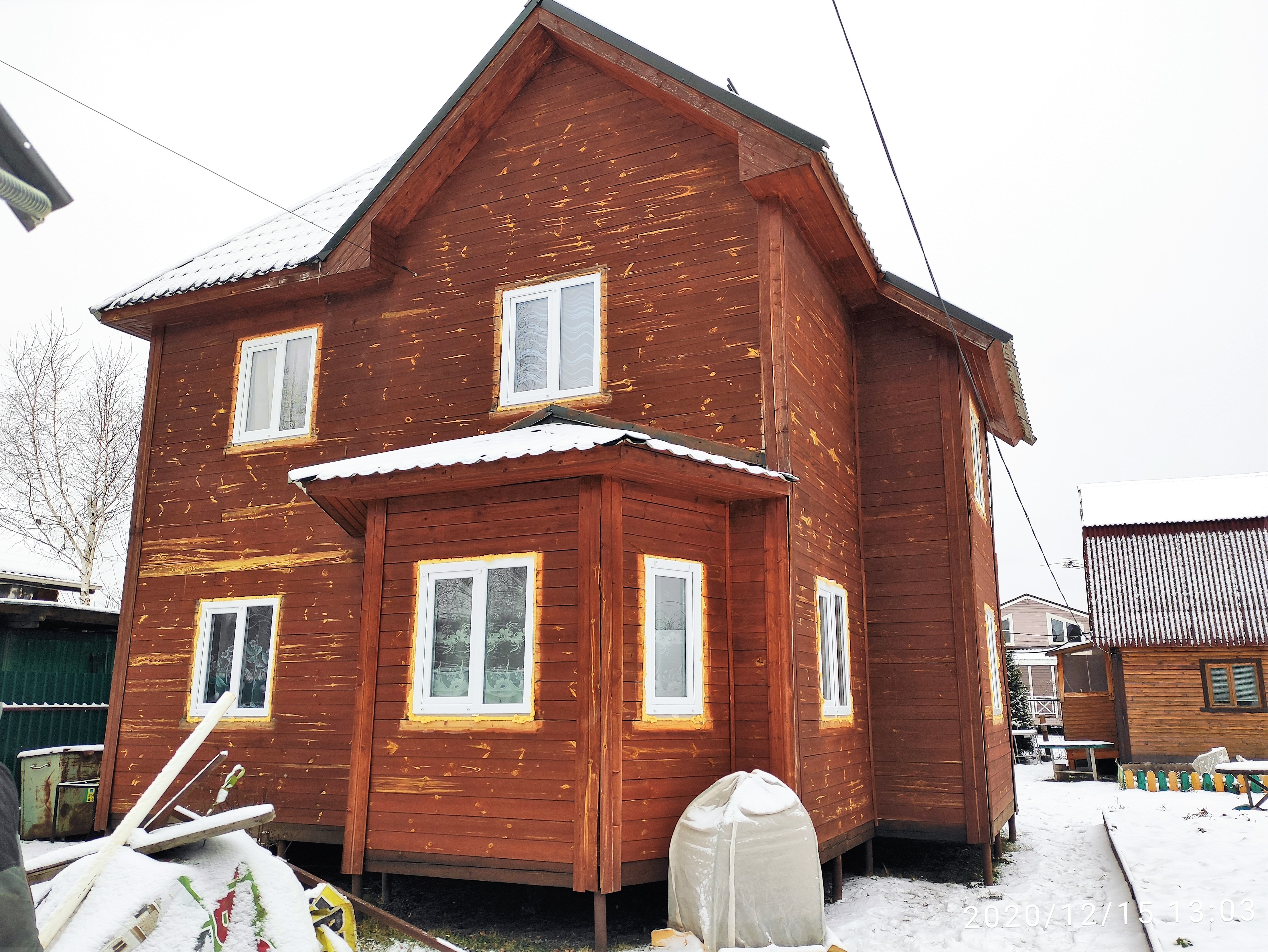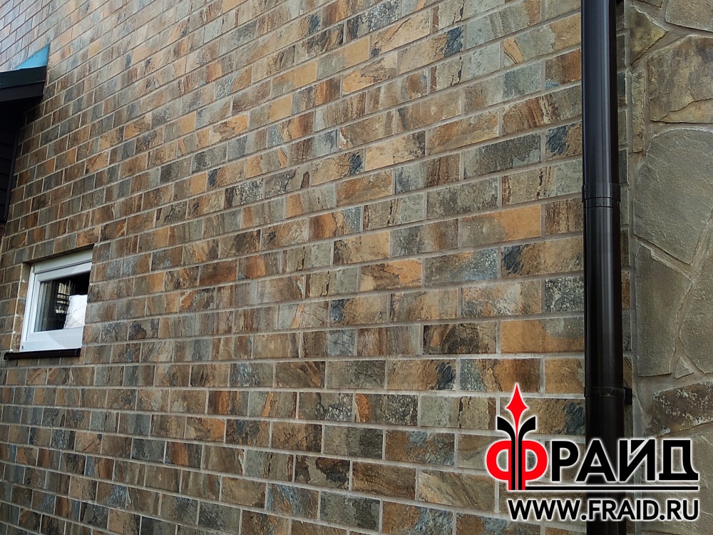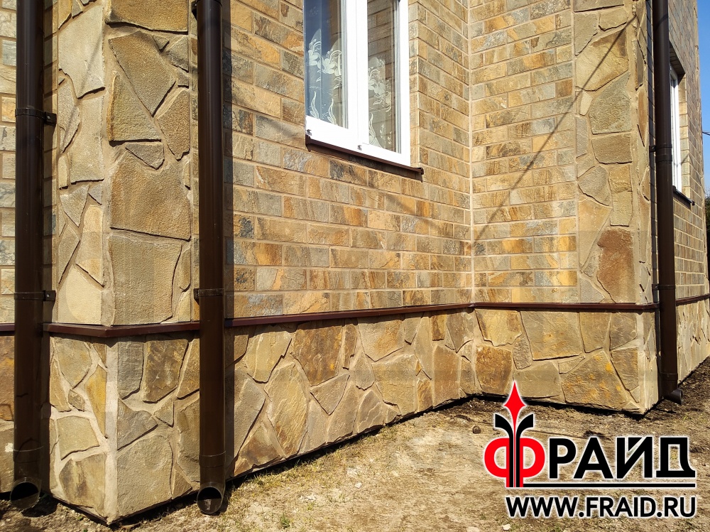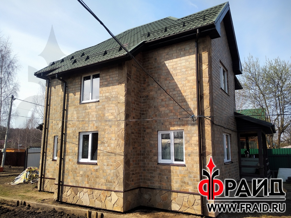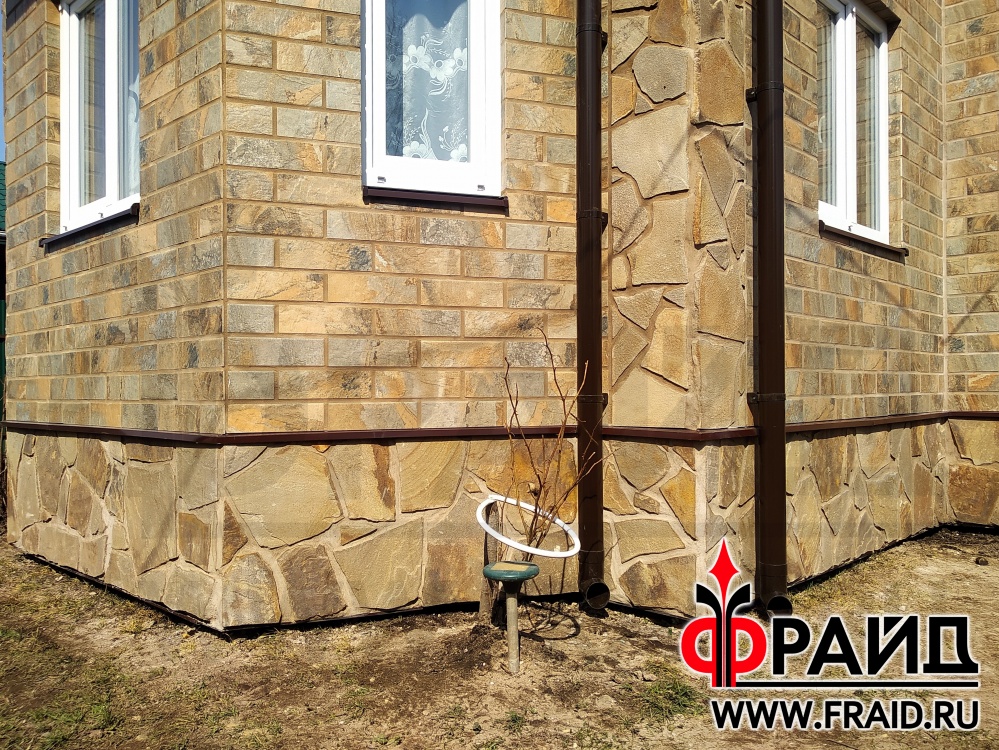 Дом из бруса. Отделка и утепление фасада. Термопанели Фрайд Премиум с керамогранитом Kerama Marazzi Сланец бежевый и с натуральным камнем - ростовский песчаник желтосерый.