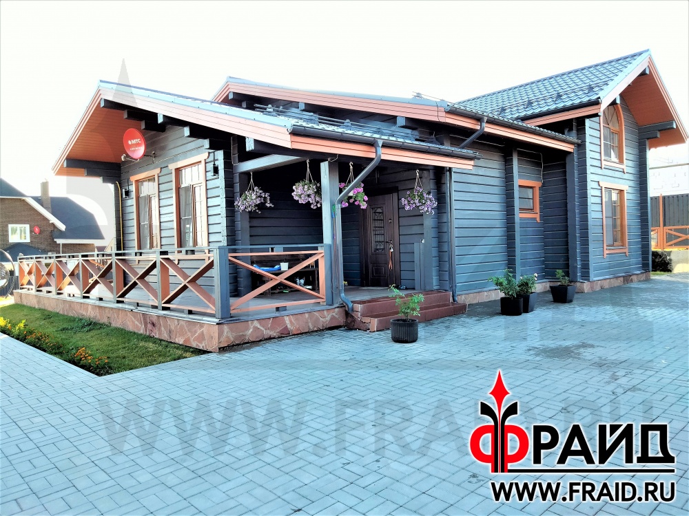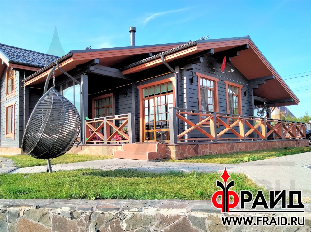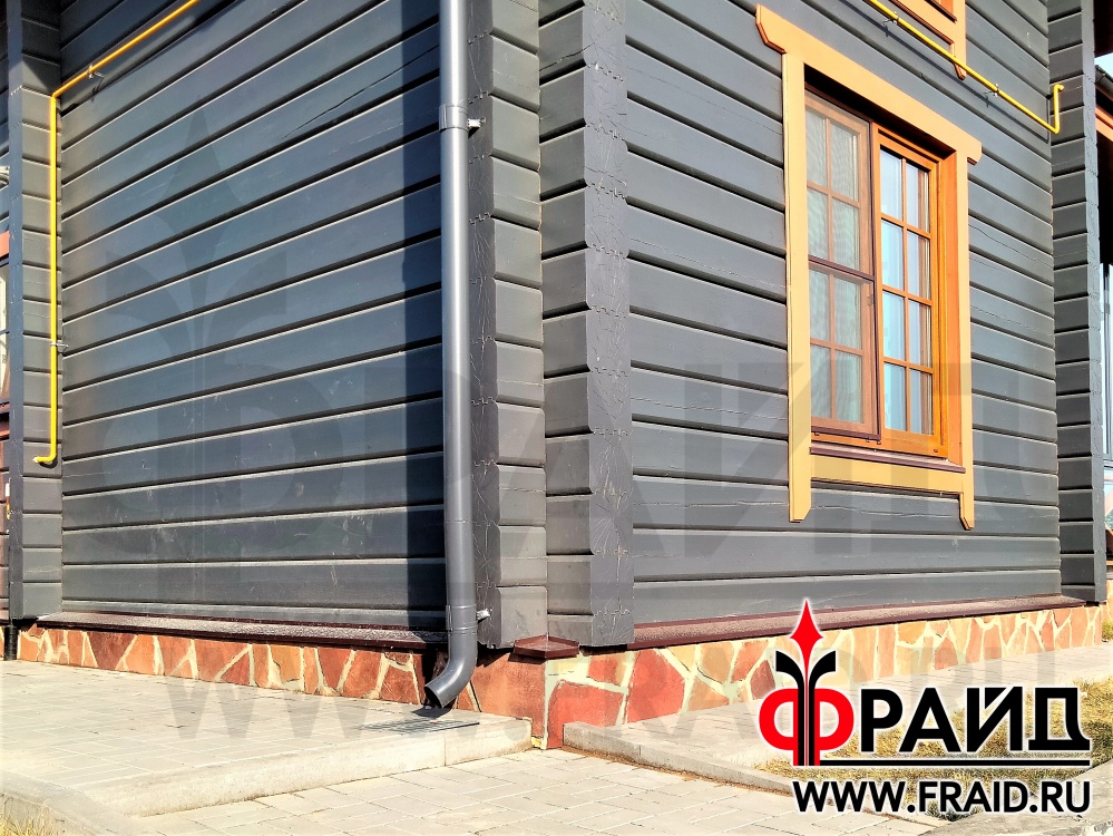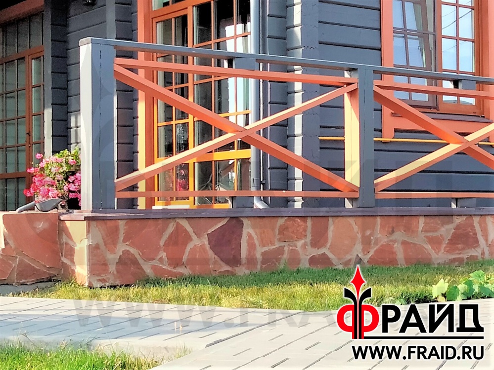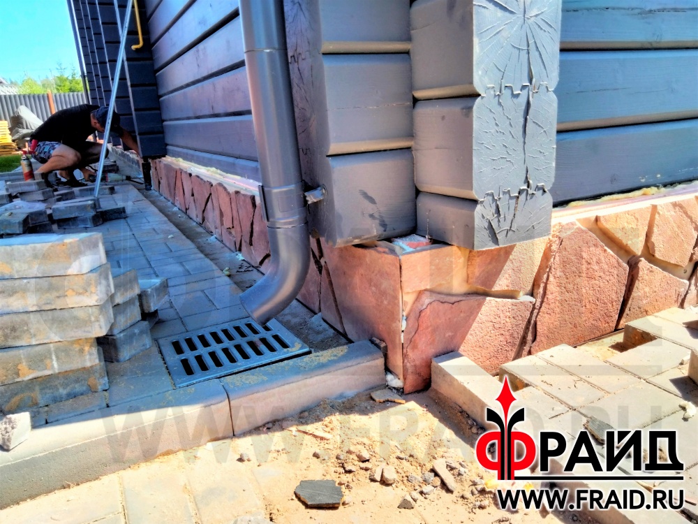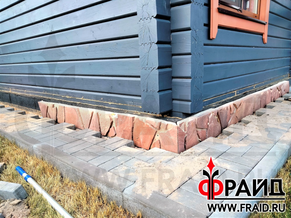 Цоколь сваи деревянного дома и термопанели Фрайд Премиум с натуральным камнем - ростовский Песчаник красный обожженный.