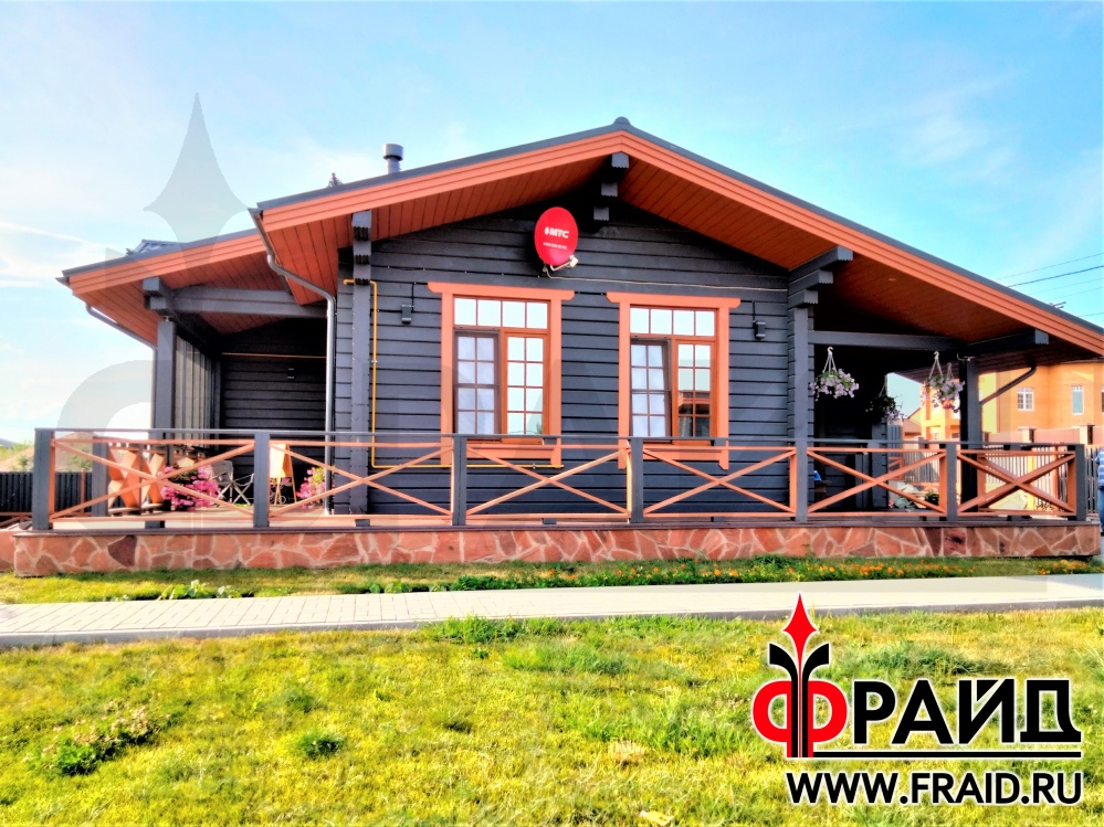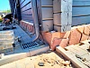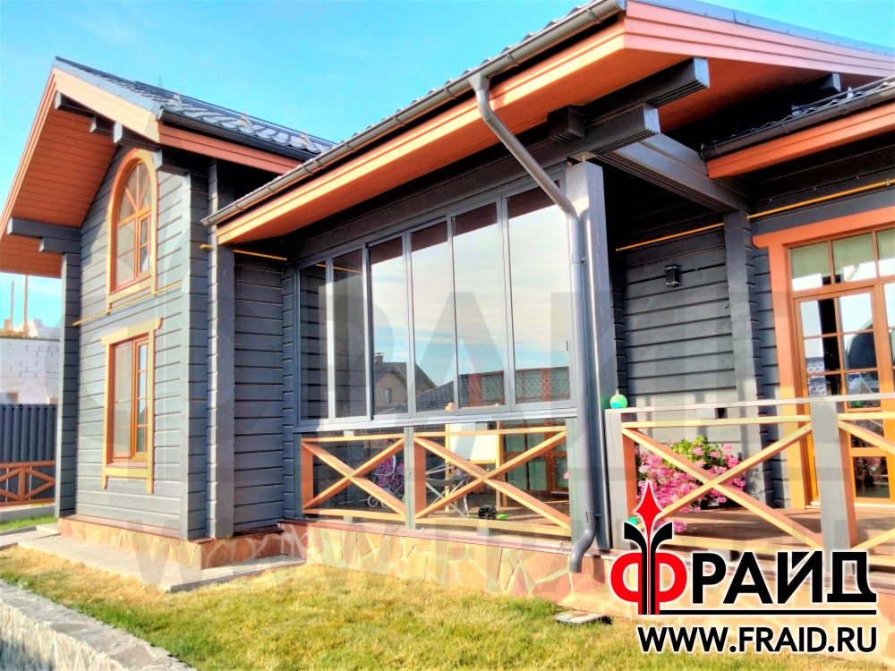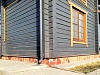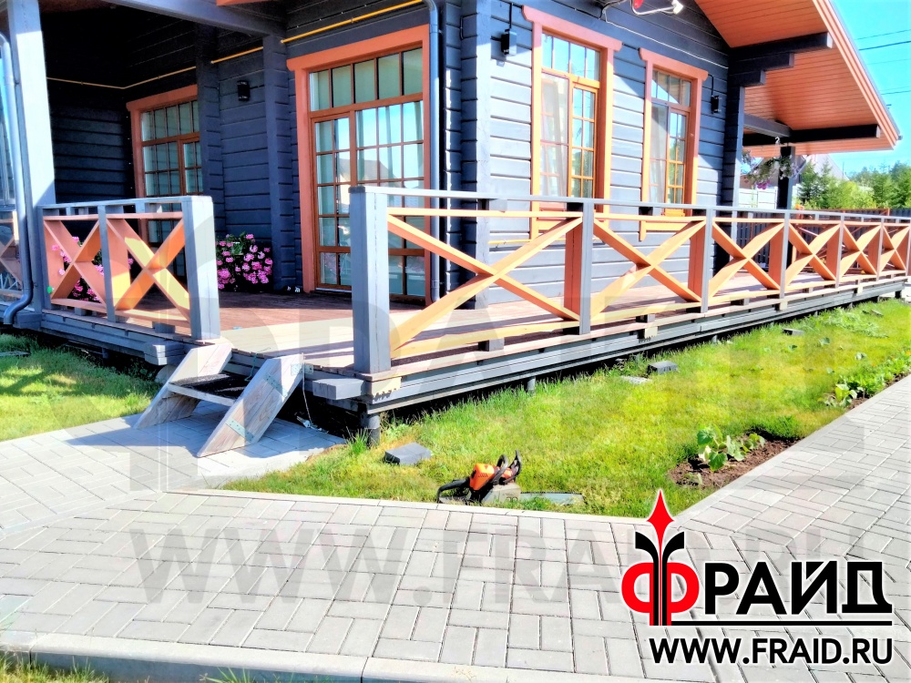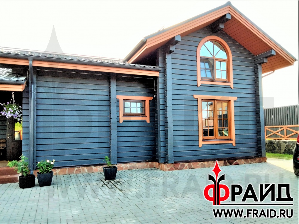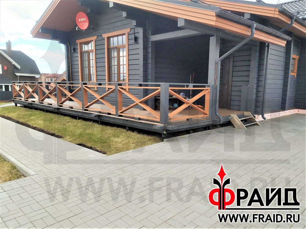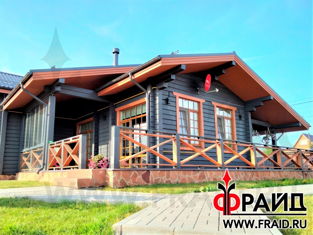 Цоколь сваи деревянного дома и термопанели Фрайд Премиум с натуральным камнем - ростовский Песчаник красный обожженный.