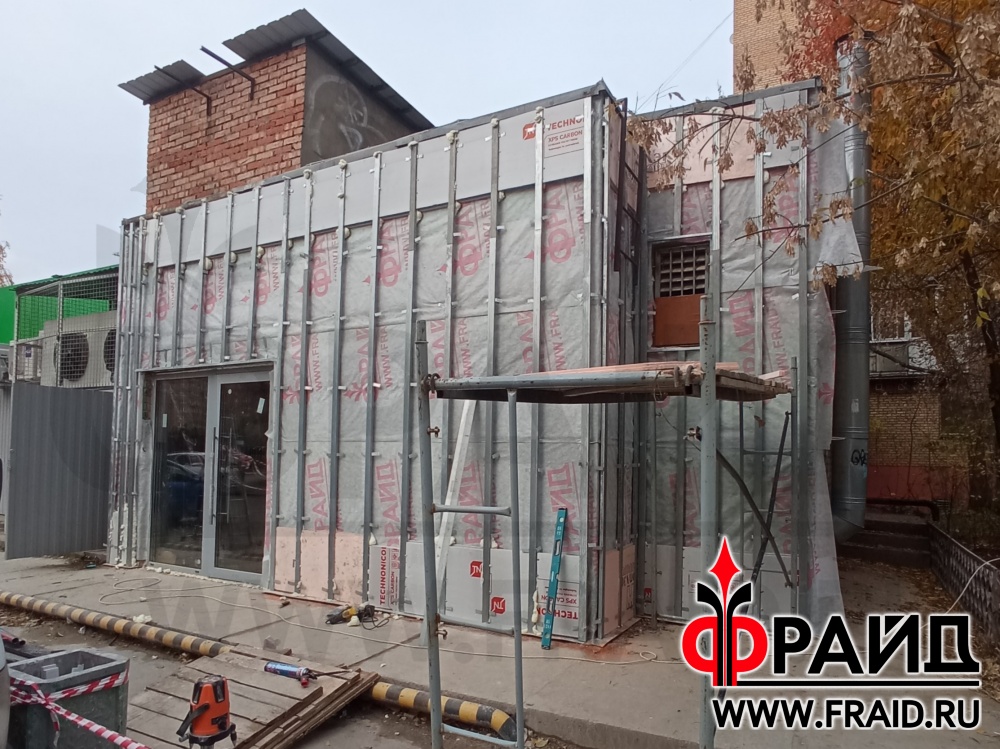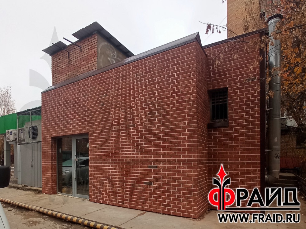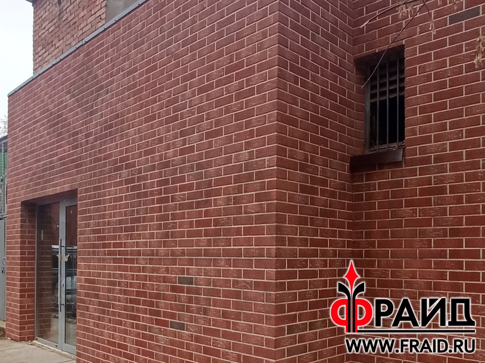 Термопанели Фрайд с клинкером Feldhaus R690 NF14. Отделка и утепление кирпичного строения. Бойцовский клуб Долгопрудный.
