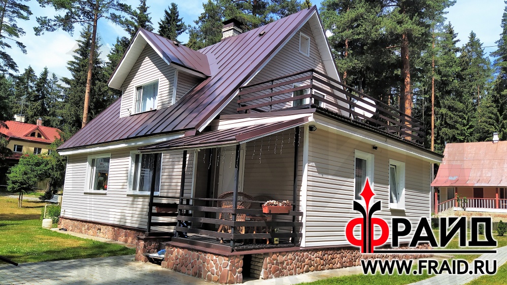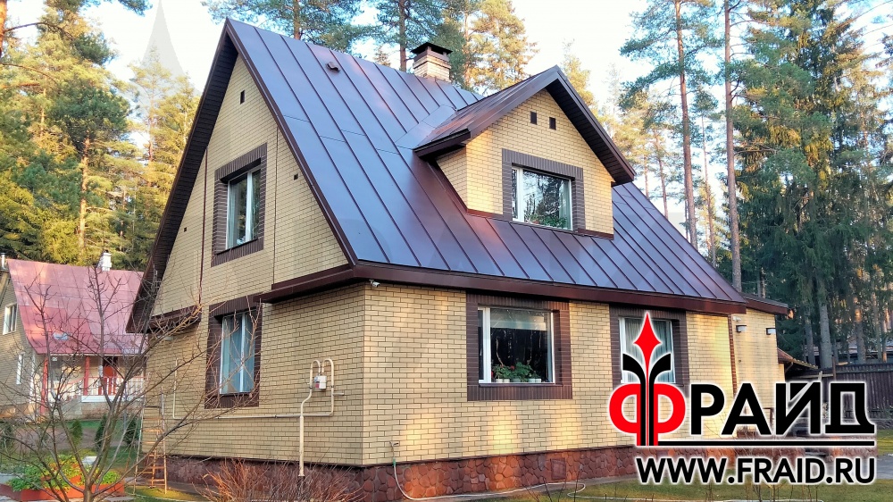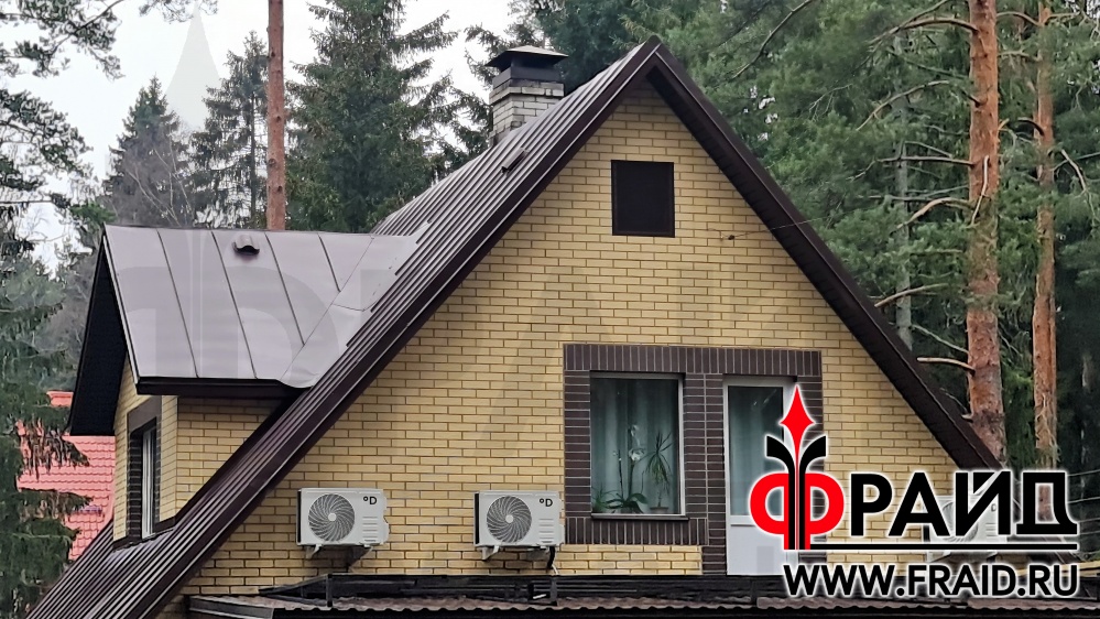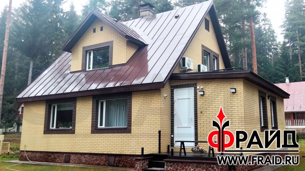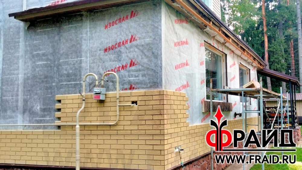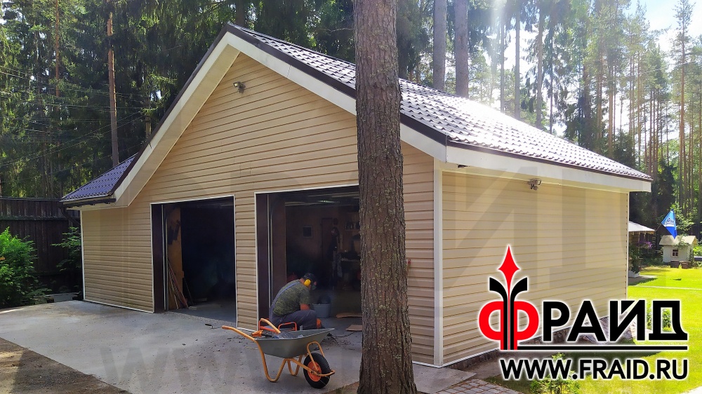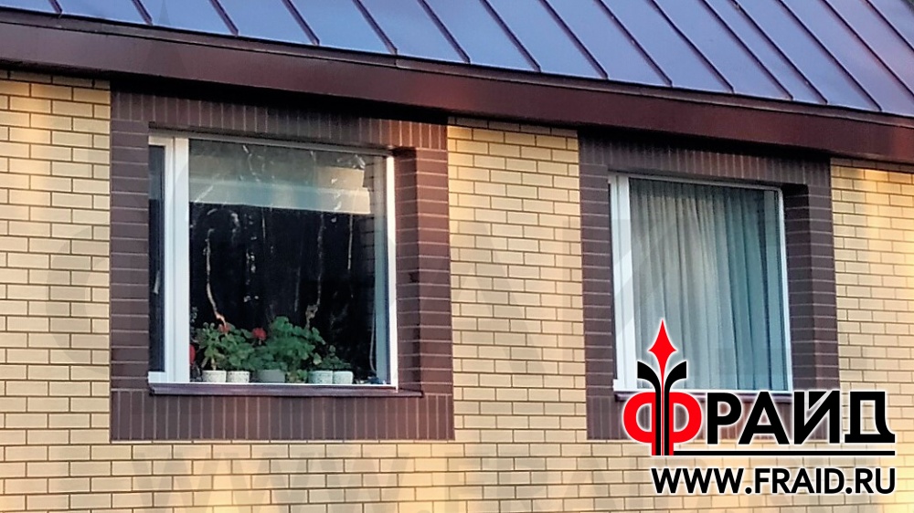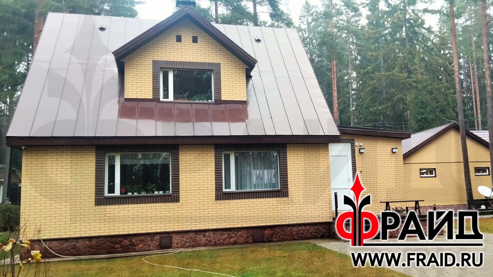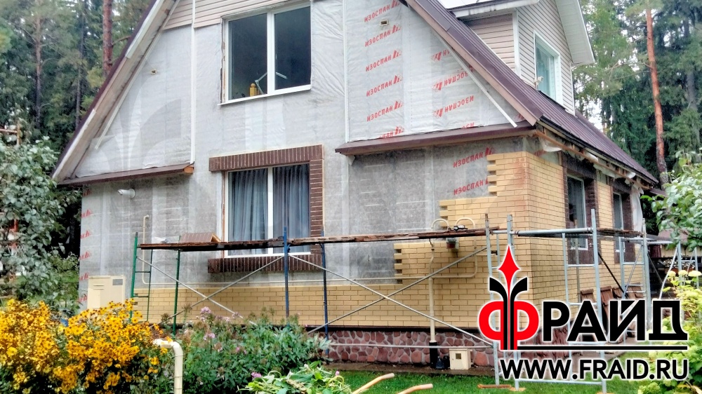 Отделка каркасного дома - термопанели Фрайд Премиум. Утепление гаража из керамзитобетонных блоков - термопанели Фрайд Эконом Стандарт. Клинкерная плитка Cerrad Rustico Piaskowa, Paradyz Natural Brown Duro.