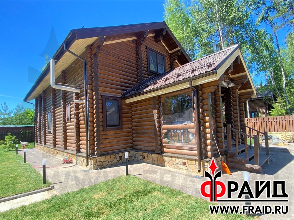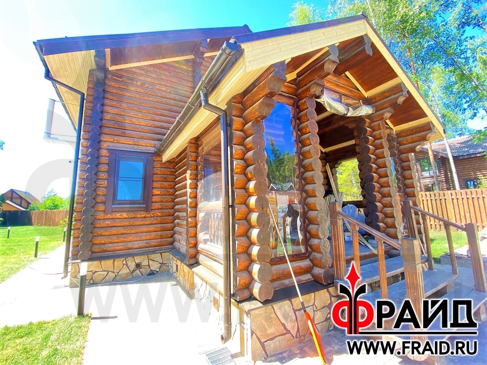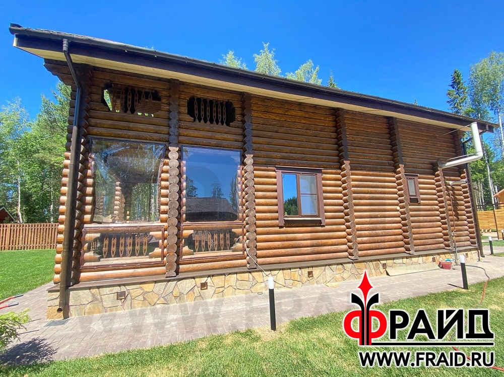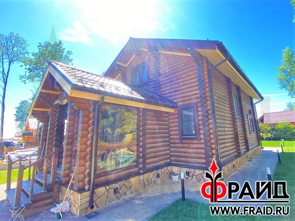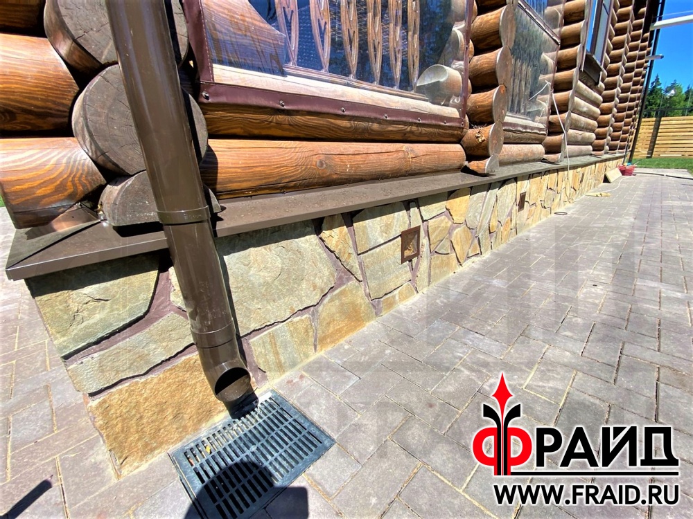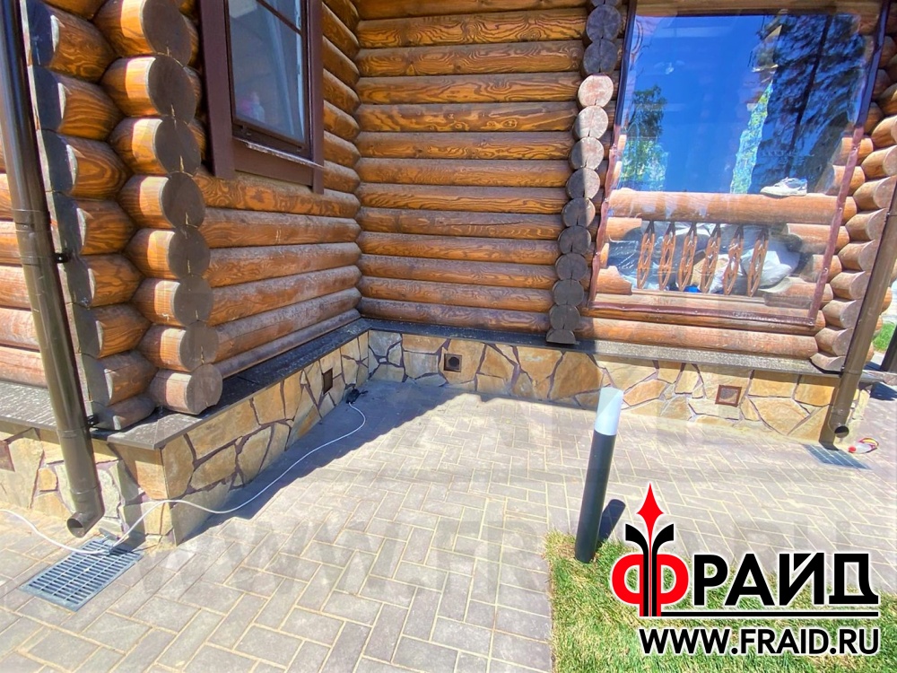 Отделка и утепление цоколя деревянного дома. Термопанели Фрайд Премиум с натуральным камнем ростовский песчаник желтосерый.