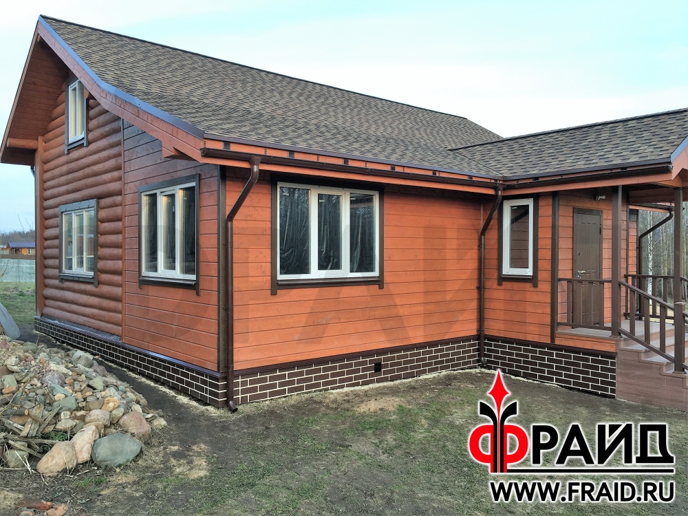 Цоколь - бетонные и металлические сваи. Термопанели Фрайд Премиум с керамогранитом Estima MI04/