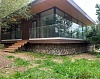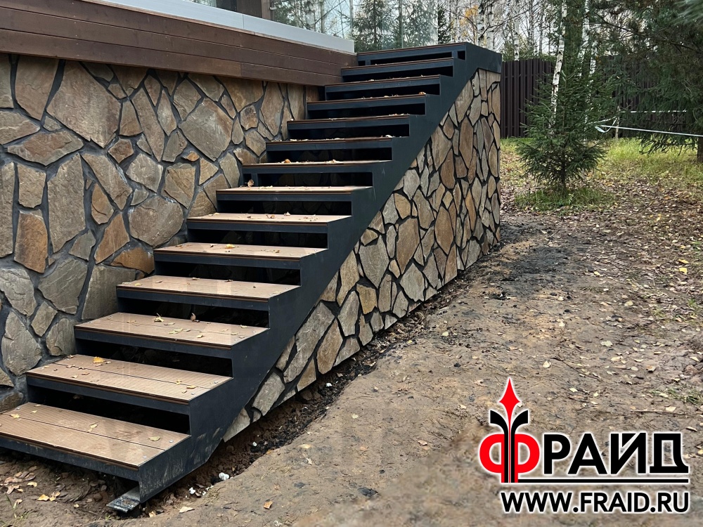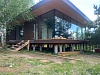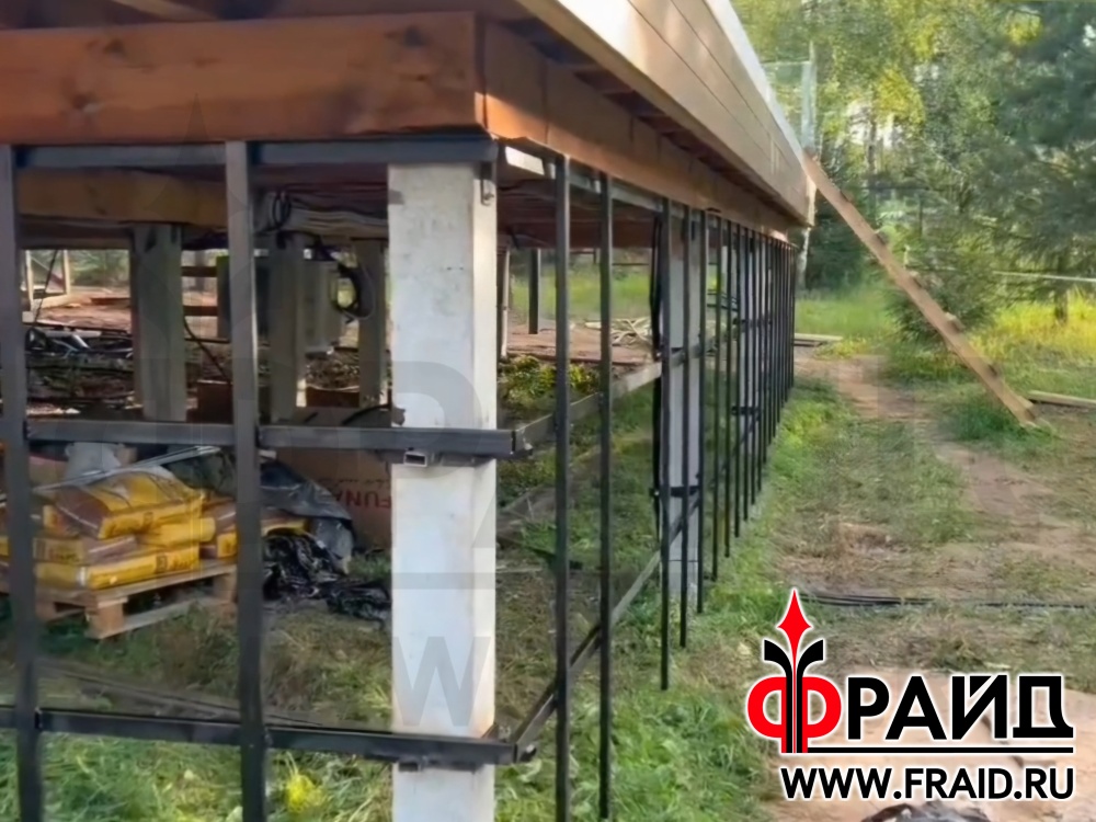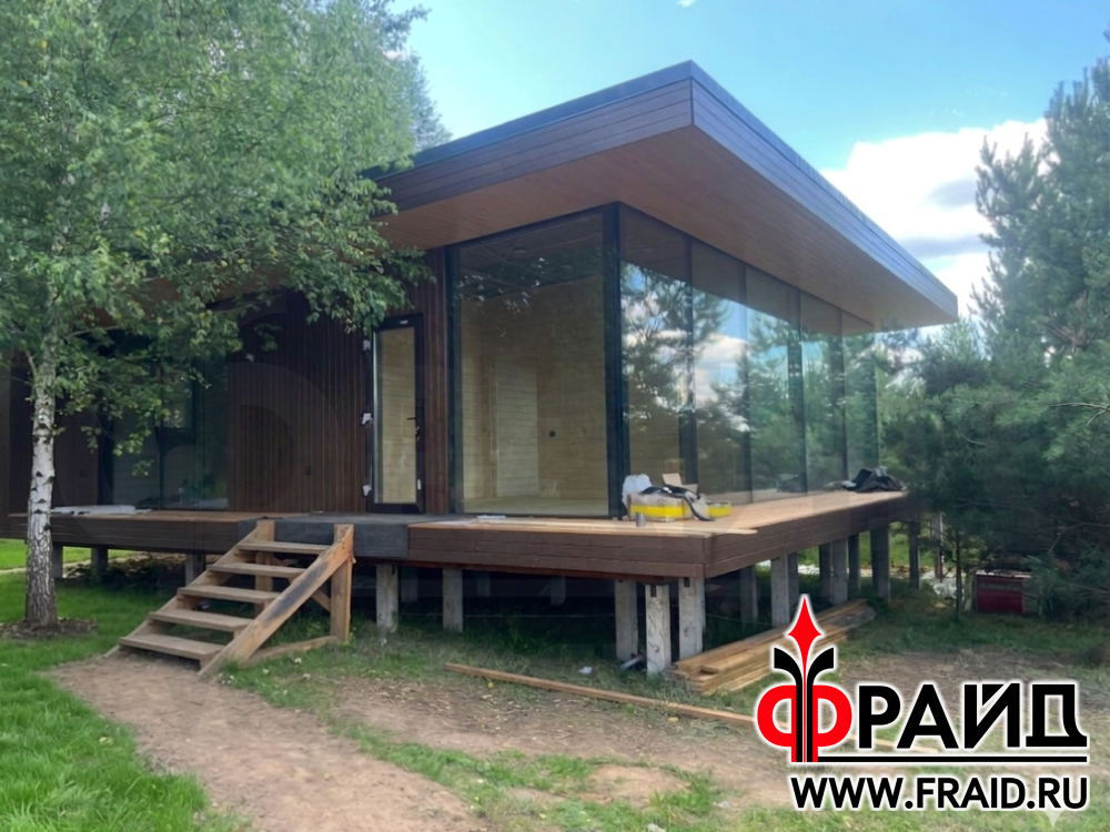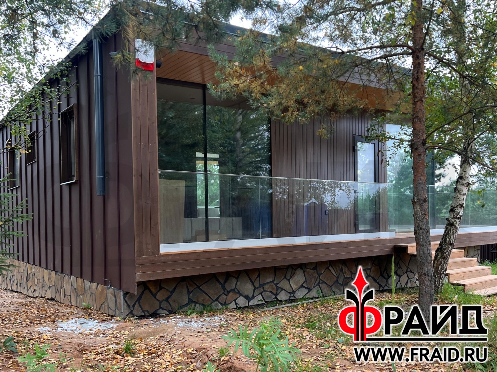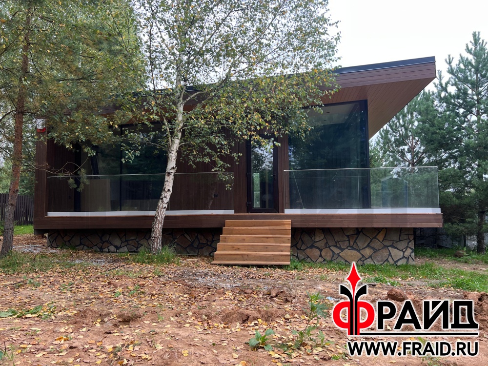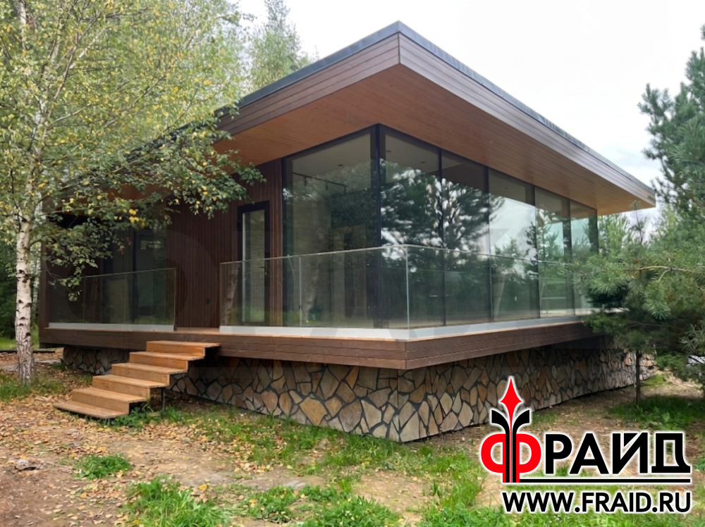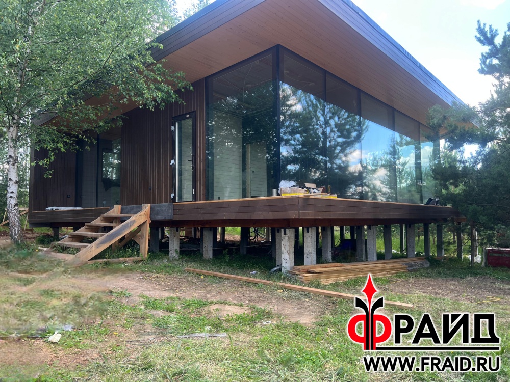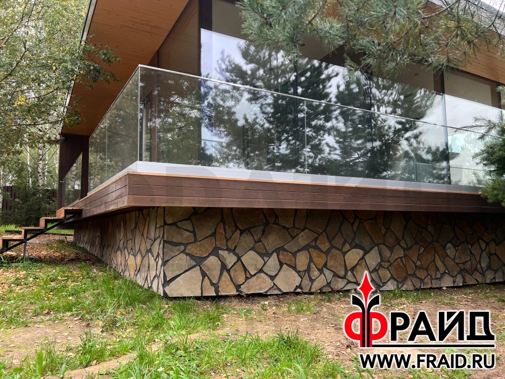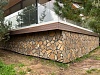 Отделка цоколя дома на бетонных сваях. Термопанели Фрайд Премиум с ростовским желто серым песчаником.